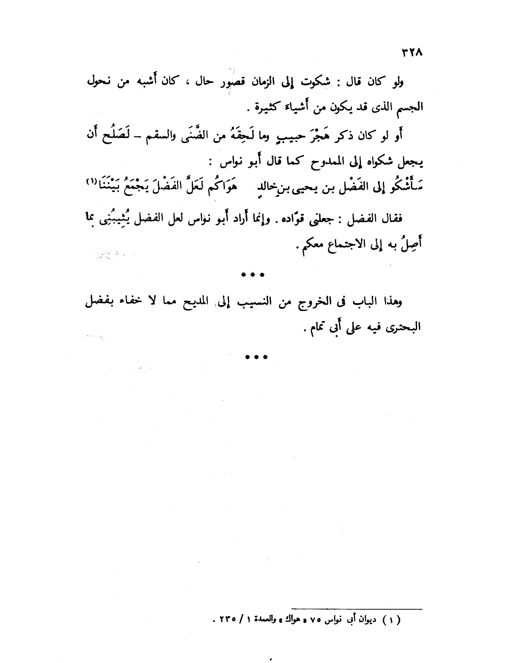 وهذا الباب في الخروج من النسيب إلى المديح مما لا خفاء بفضل البحتري فيه على أبي تمام.
