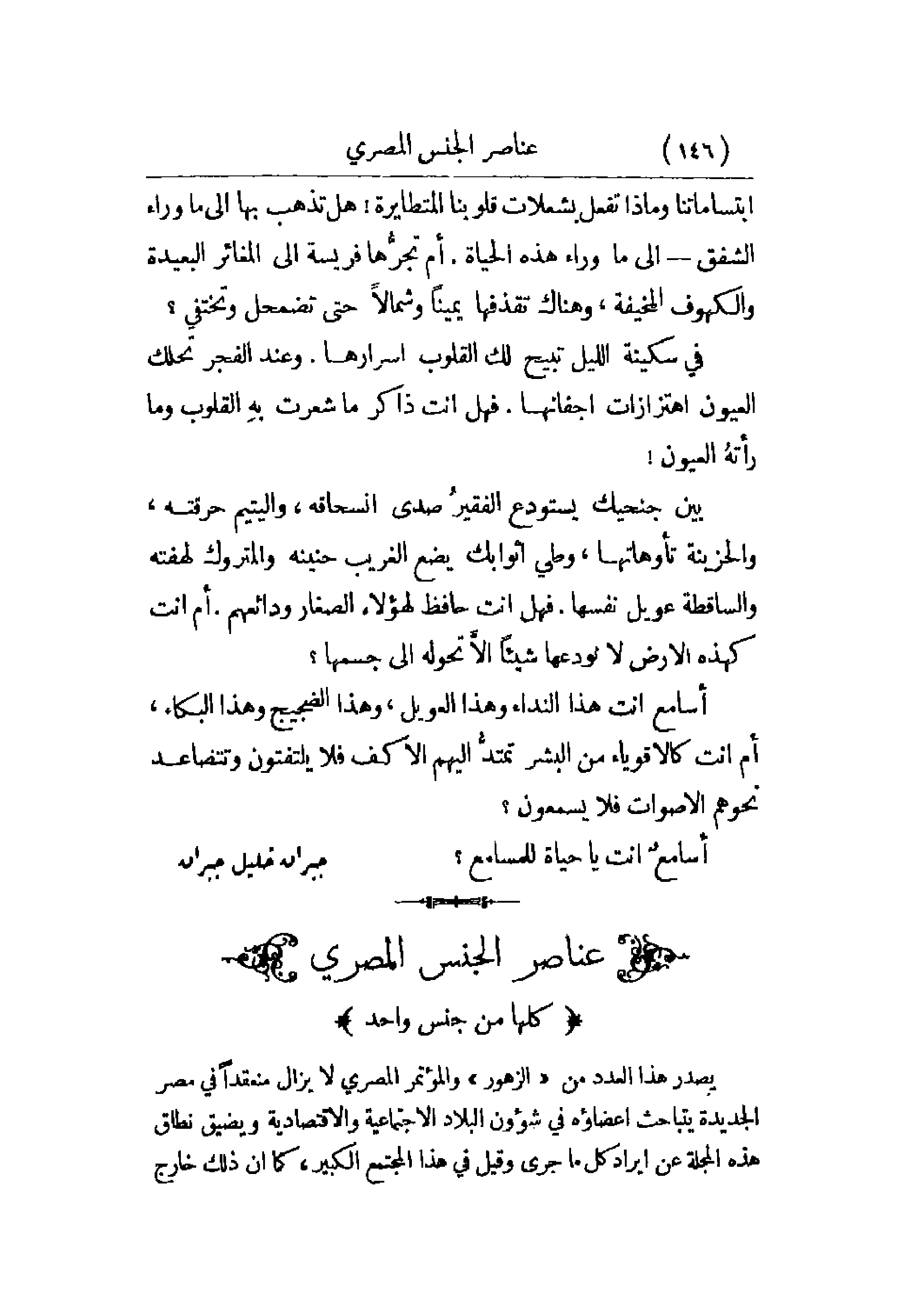 في سكينة الليل تبيح لك القلوب أسرارها. وعند الفجر تحلك العيون اهتزازات أجفانها. فهل أنت ذاكر ما شعرت به القلوب وما رأته العيون!