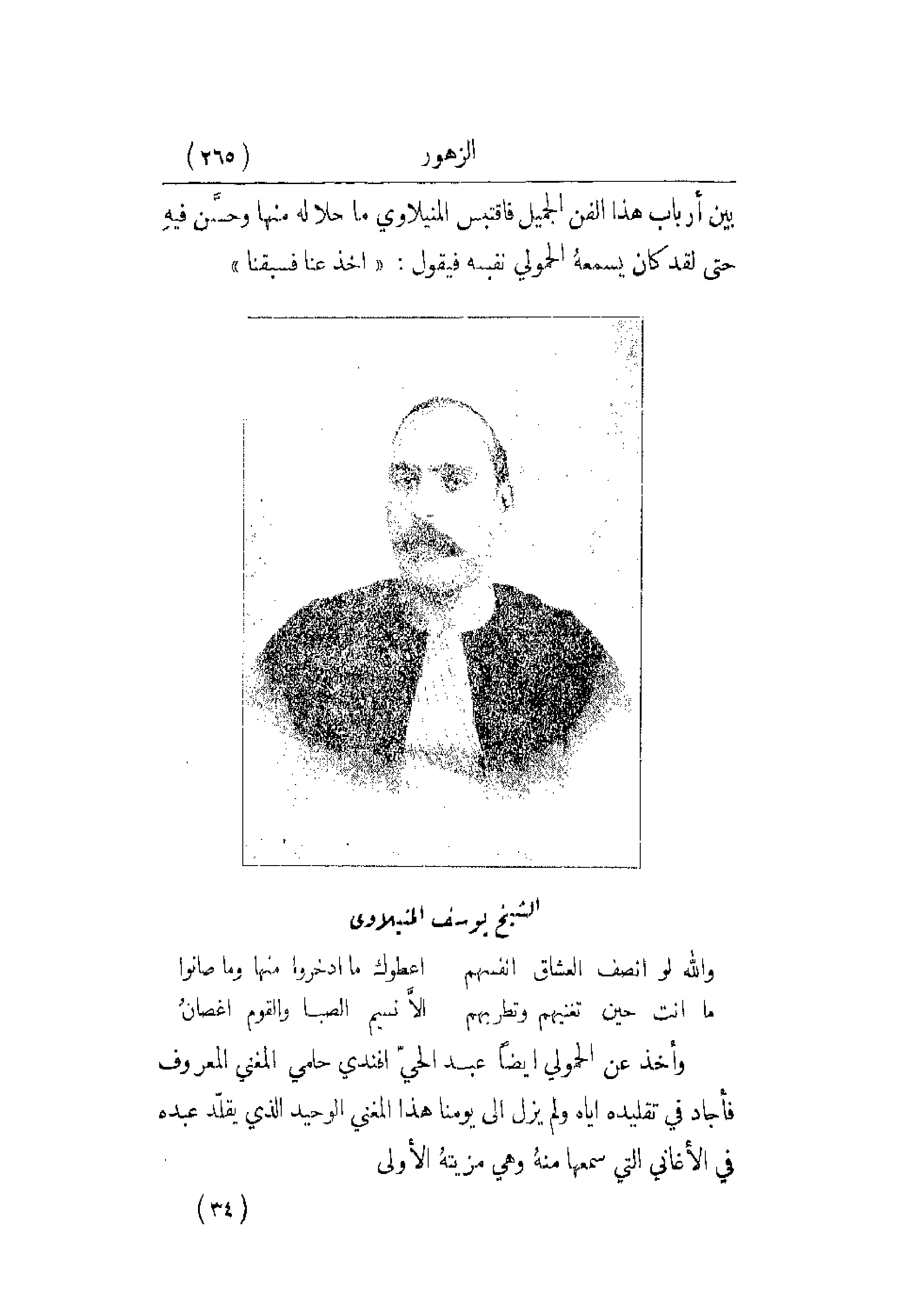 بين أرباب هذا الفن الجميل فاقتبس المنيلاوي ما حلا له منها وحسن فيه حتى لقد كان يسمعه الحمولي نفسه فيقول: أخذ عنا فسبقنا.