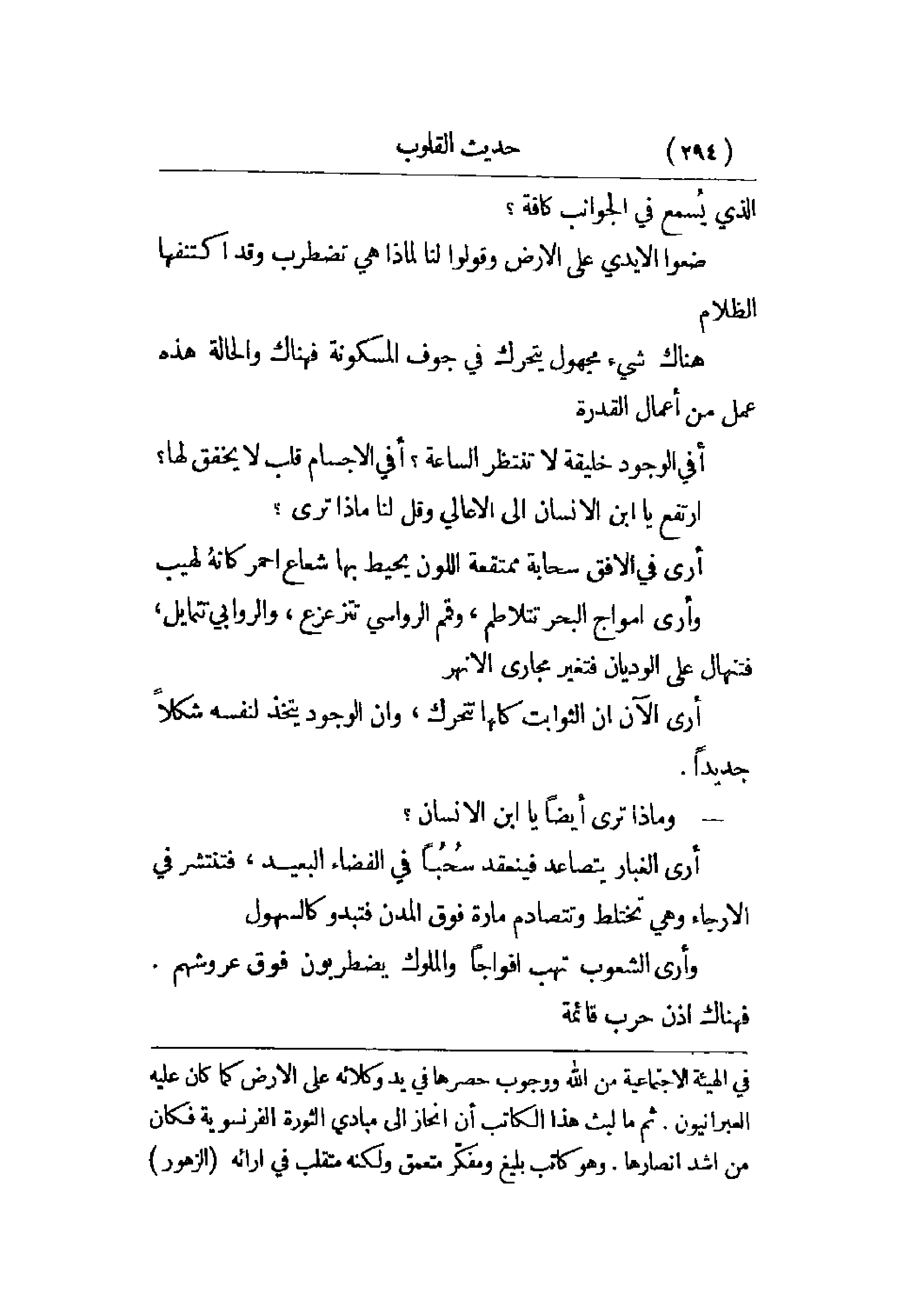 أفي الوجود خليقة لا تنتظر الساعة؟ أفي الأجسام قلب لا يخفق لها؟