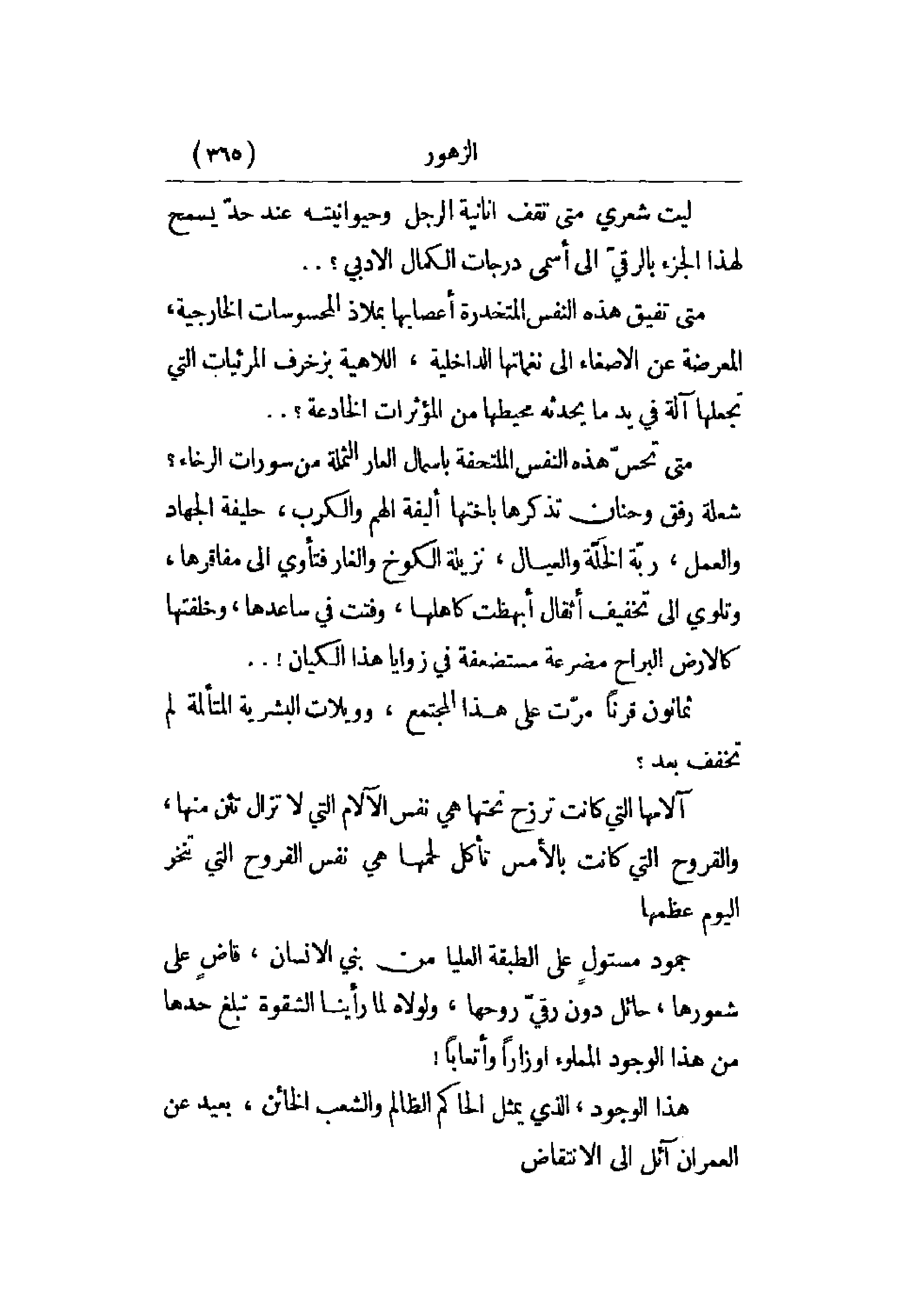 ليت شعري متى تقف أنانية الرجل وحيوانيته عند حد يسمح لهذا الجزء بالرقي إلى أسمى درجات الكمال الأدبي؟. . .