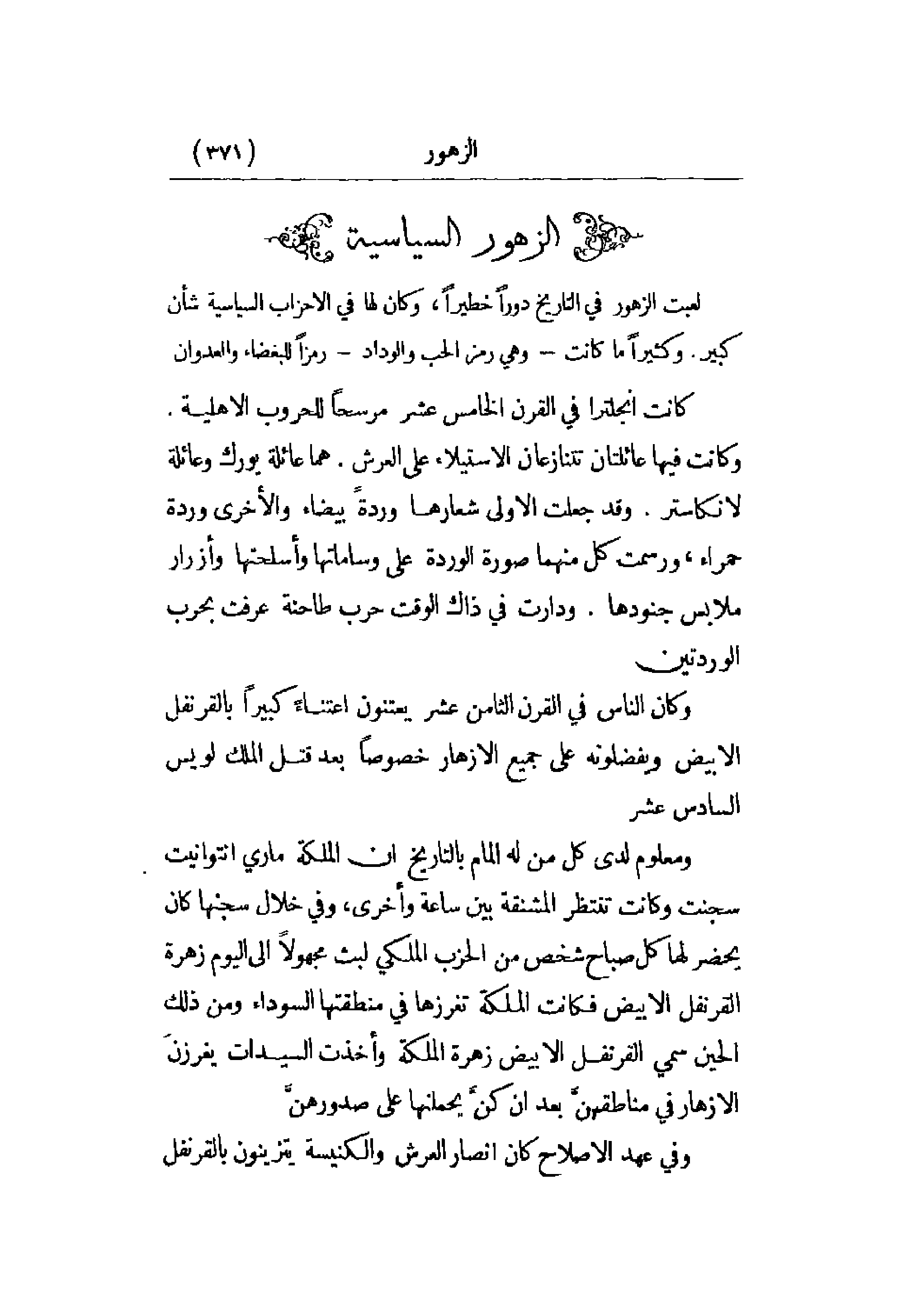 لعبت الزهنور في التاريخ دوراً خطيراً، وكان لها في الأحزاب السياسية شأن كبير وكثيراً ما كانت - وفي رمز الحب والوداد - رمزاً للبغضاء والعدوان.