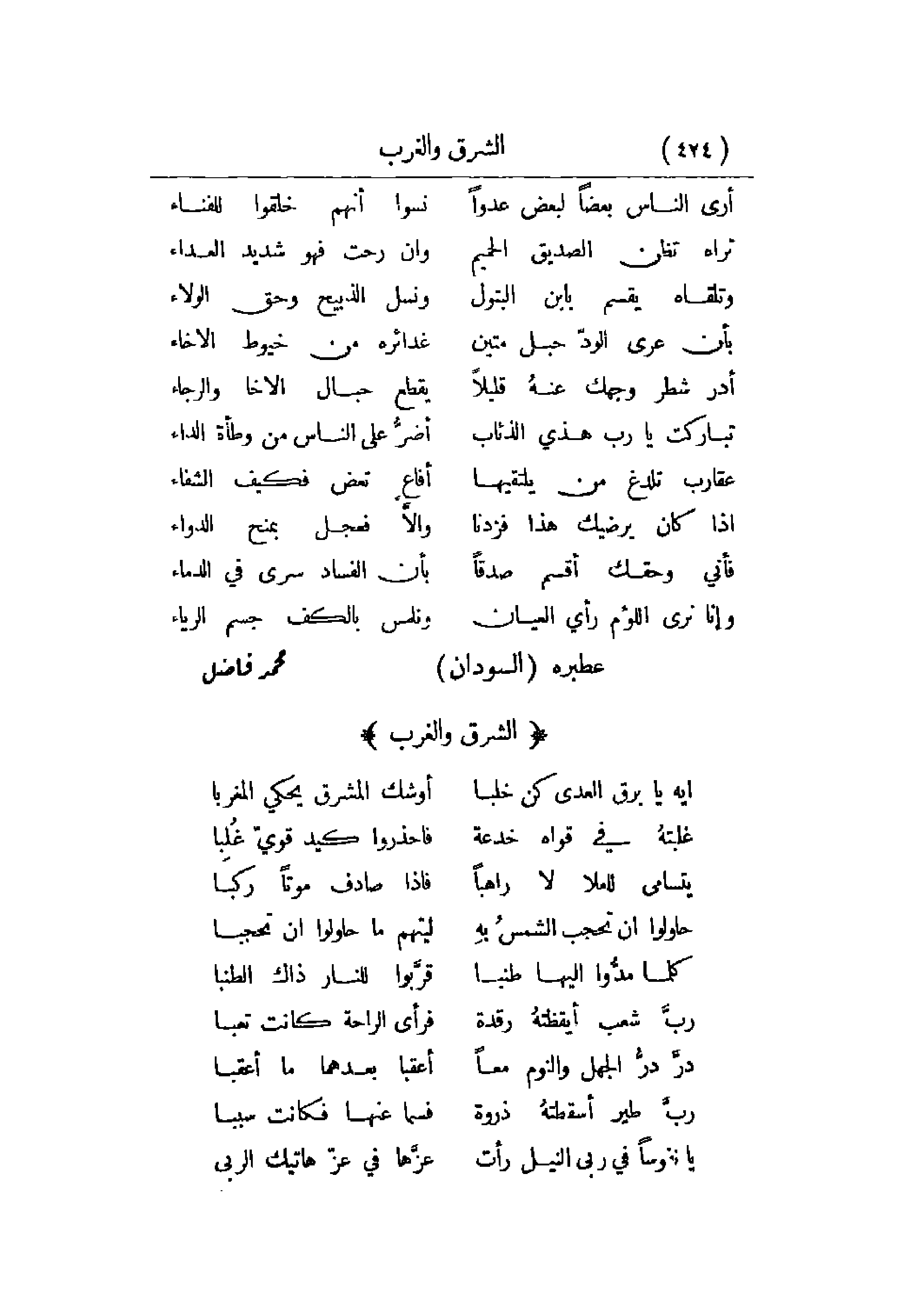 أيه يا برق العدى كن خلباً ... أوشك المشرق يحكي المغربا