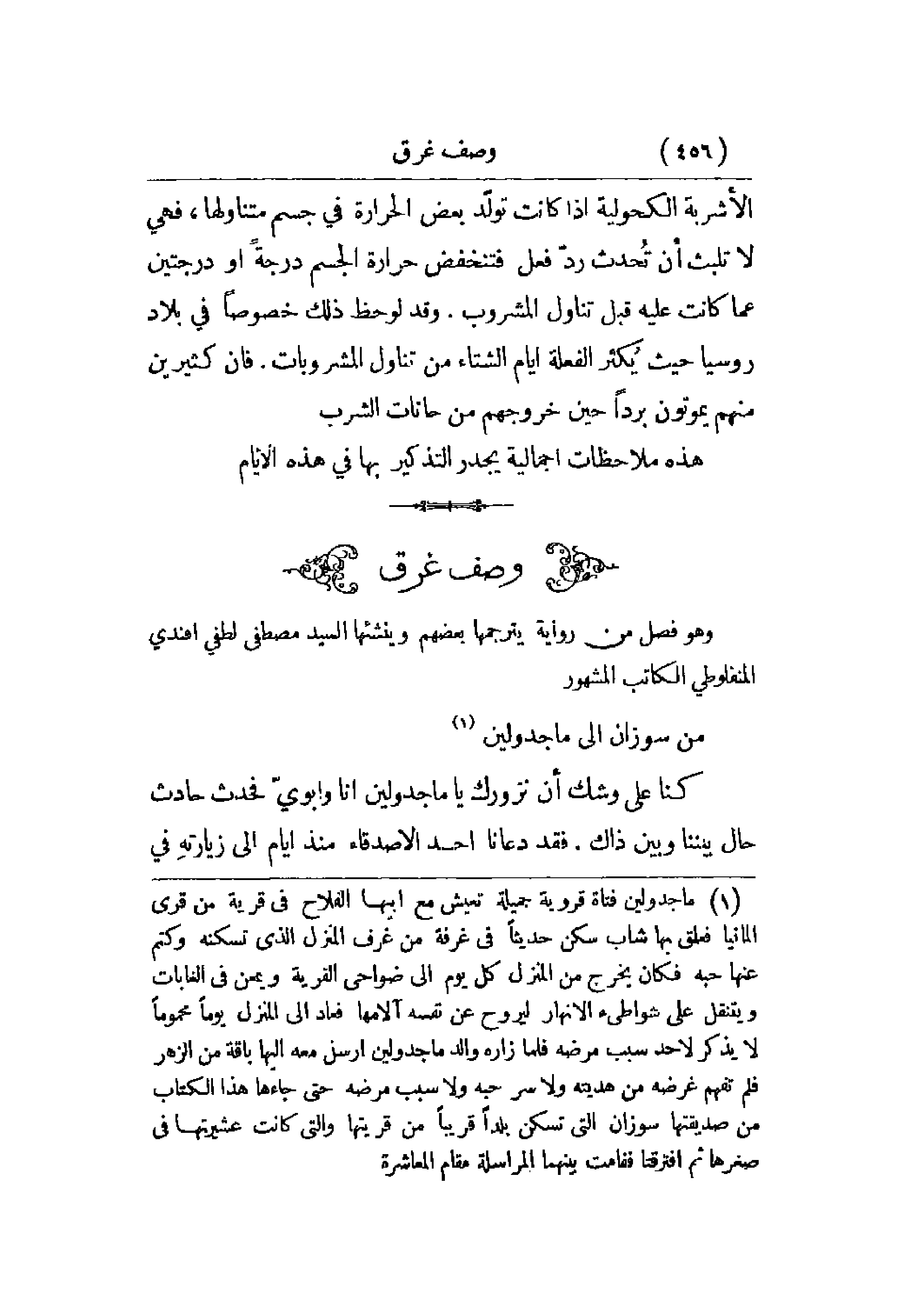 وهو فصل من رواية يترجمها بعضهم وينشئها السيد مصطفى لطفي أفندي المنفلوطي الكاتب المشهور.