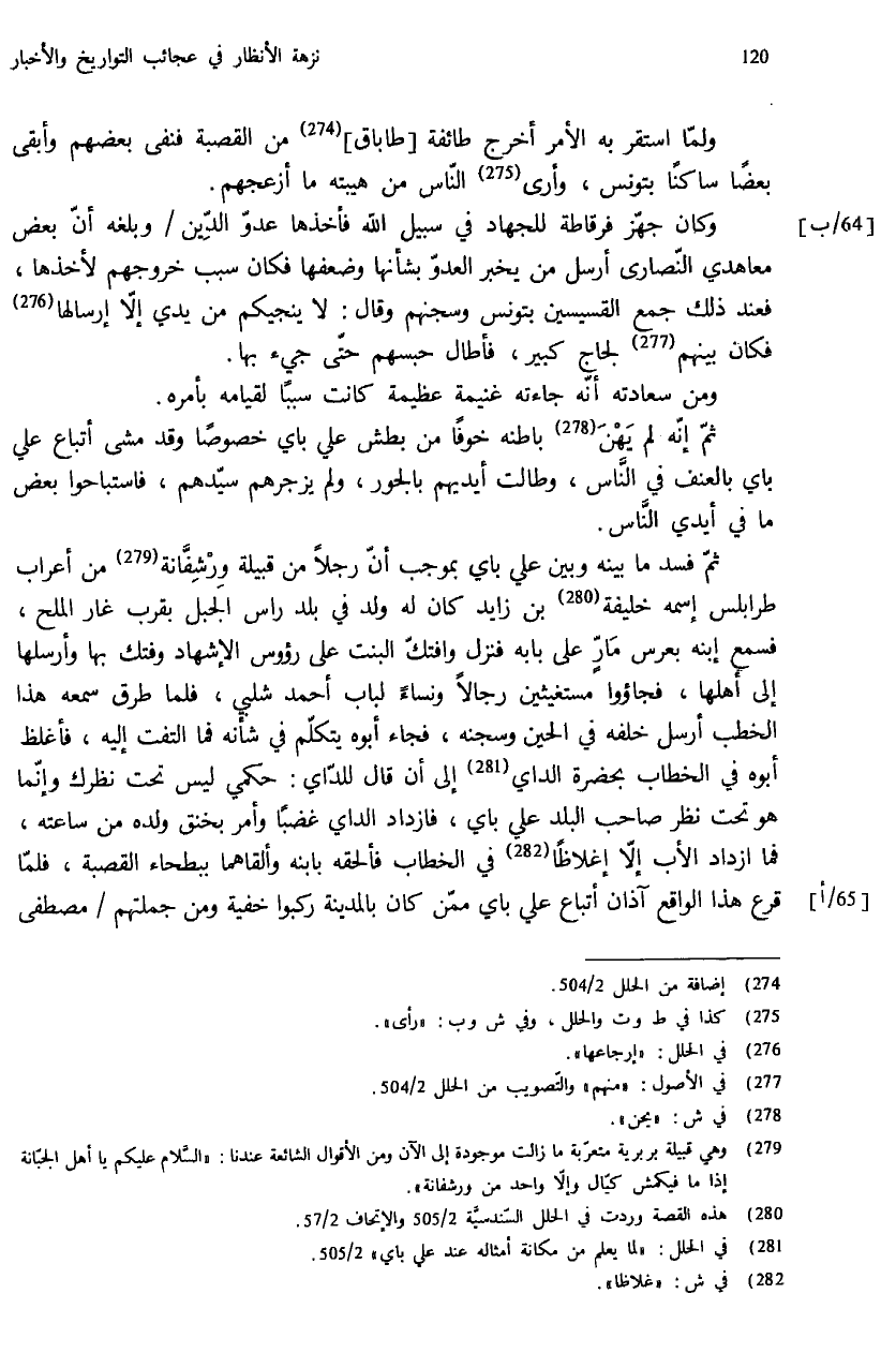 (¬280) هذه القصة وردت في الحلل السّندسيّة 2/ 505 والإتحاف 2/ 57.