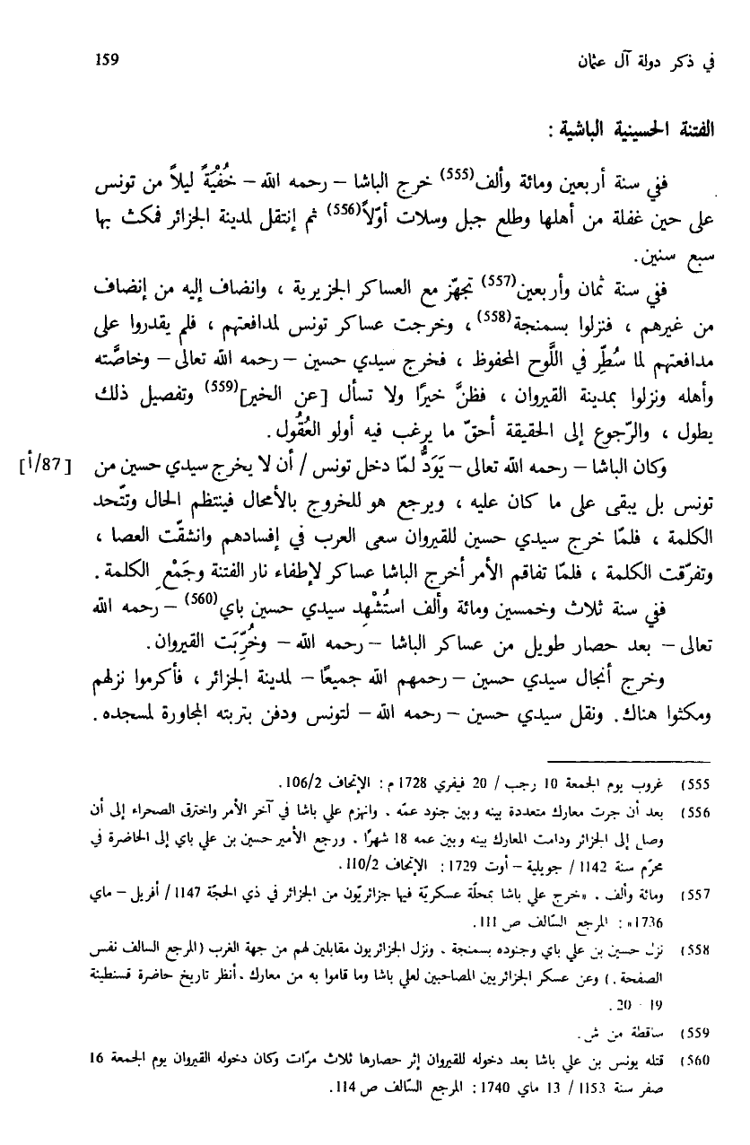 (¬557) ومائة وألف، «خرج علي باشا بمحلّة عسكريّة فيها جزائريّون من الجزائر في ذي الحجّة 1147 / أفريل - ماي 1736»: المرجع السّالف ص: 111.