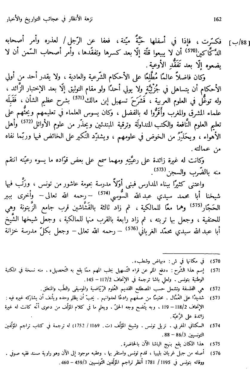 (¬574) السكتاني المغربي، نزيل تونس، وشيخ المؤلّف (ت.1169/ 1752) له ترجمة في كتاب تراجم المؤلّفين التونسيين 3/ 86 - 88.