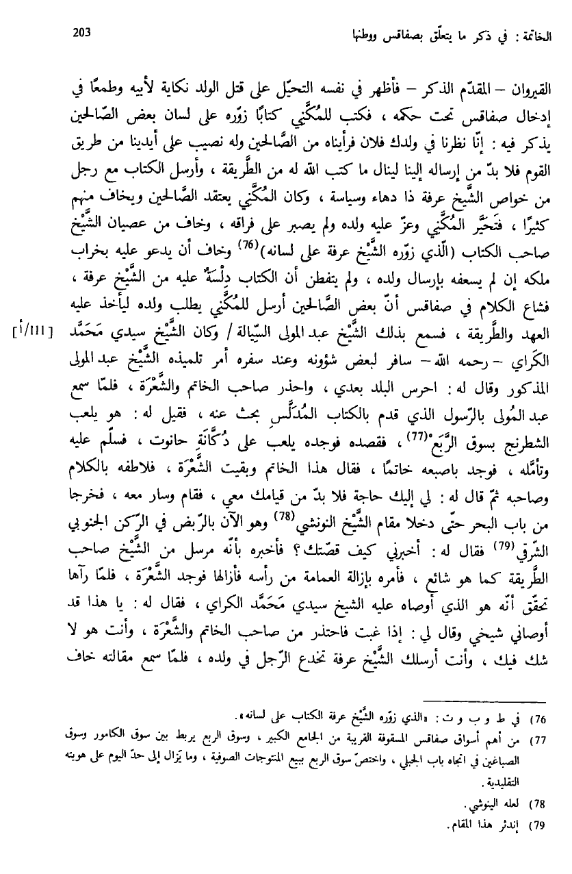 (¬76) في ط وب وت: «الذي زوّره الشّيخ عرفة الكتاب على لسانه».