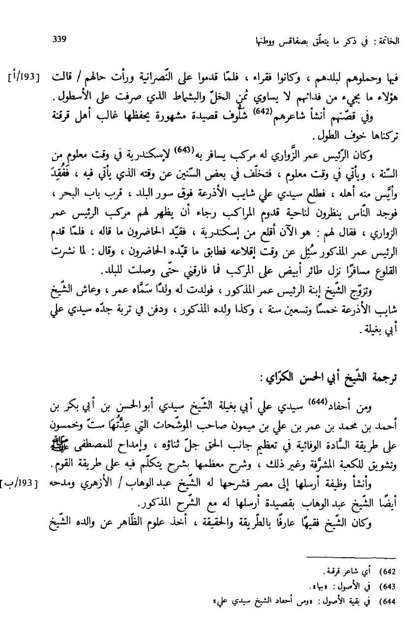 (¬644) في بقية الأصول: «ومن أحفاد الشيخ سيدي علي».