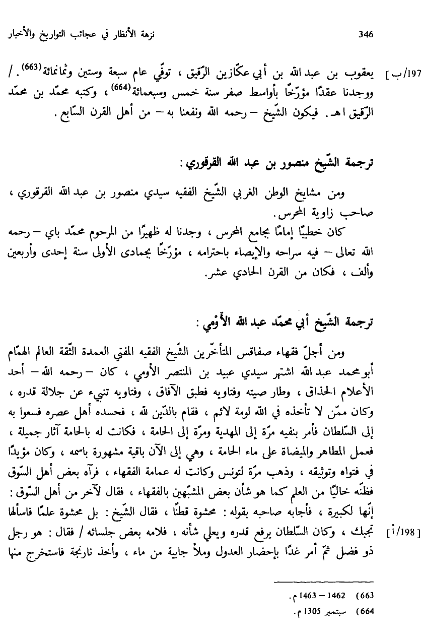 يعقوب بن عبد الله بن أبي عكّازين الرّقيق، توفّي عام سبعة وستين وثمانمائة (¬663). / ووجدنا عقدا مؤرّخا بأواسط صفر سنة خمس وسبعمائة (¬664)، وكتبه محمّد بن محمّد الرّقيق اهـ. فيكون الشّيخ - رحمه الله ونفعنا به - من أهل القرن السّابع.