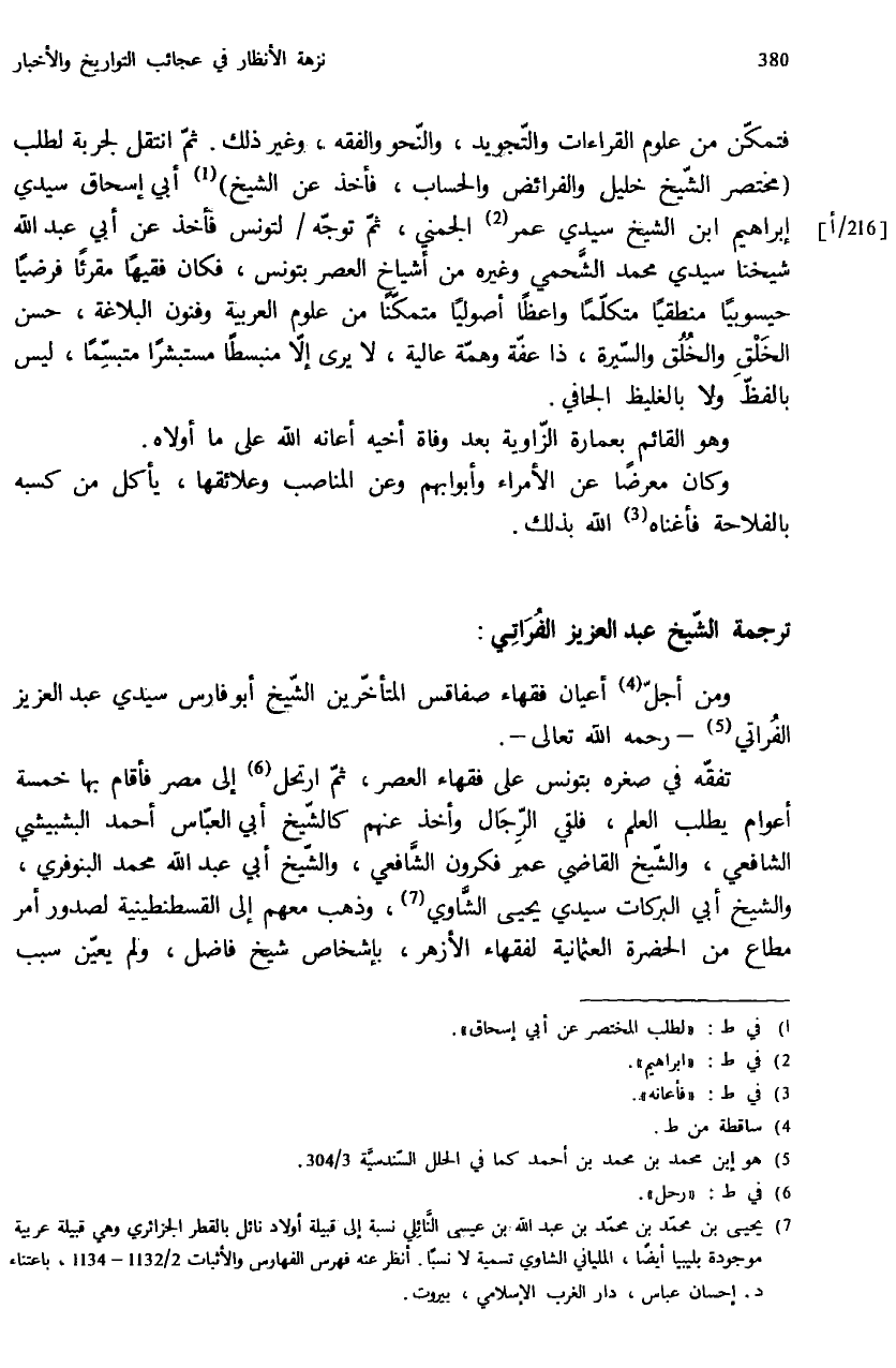 ومن أجلّ (¬4) أعيان فقهاء صفاقس المتأخّرين الشّيخ أبو فارس سيدي عبد العزيز الفراتي (¬5) - رحمه الله تعالى -.