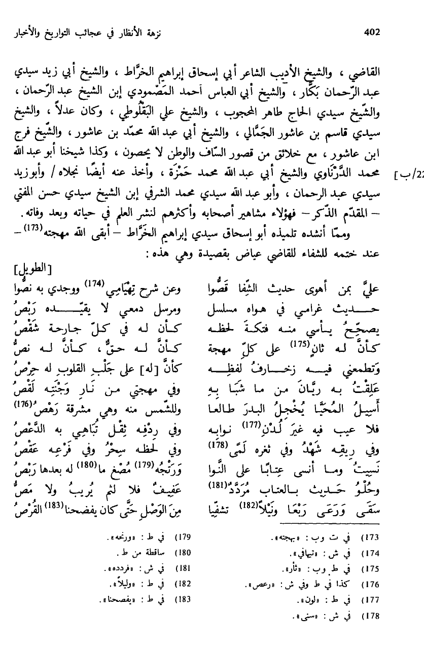 وممّا أنشده تلميذه أبو إسحاق سيدي إبراهيم الخرّاط - أبقى الله مهجته (¬173) - عند ختمه للشفاء للقاضي عياض بقصيدة وهي هذه: