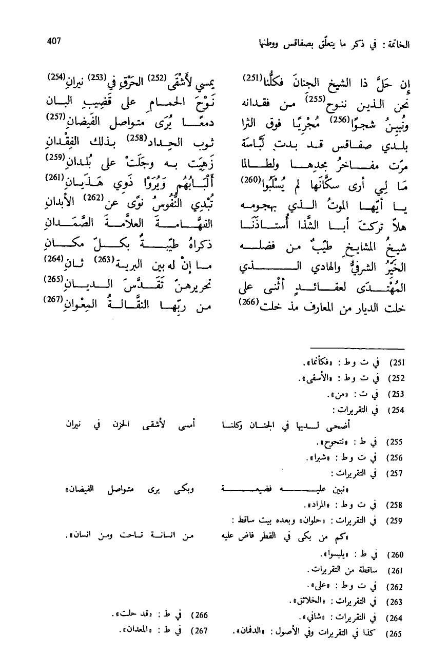 (¬254) في التقريرات: أضحى لديها في الجنان وكلنا أمسى لأشقى الحزن في نيران