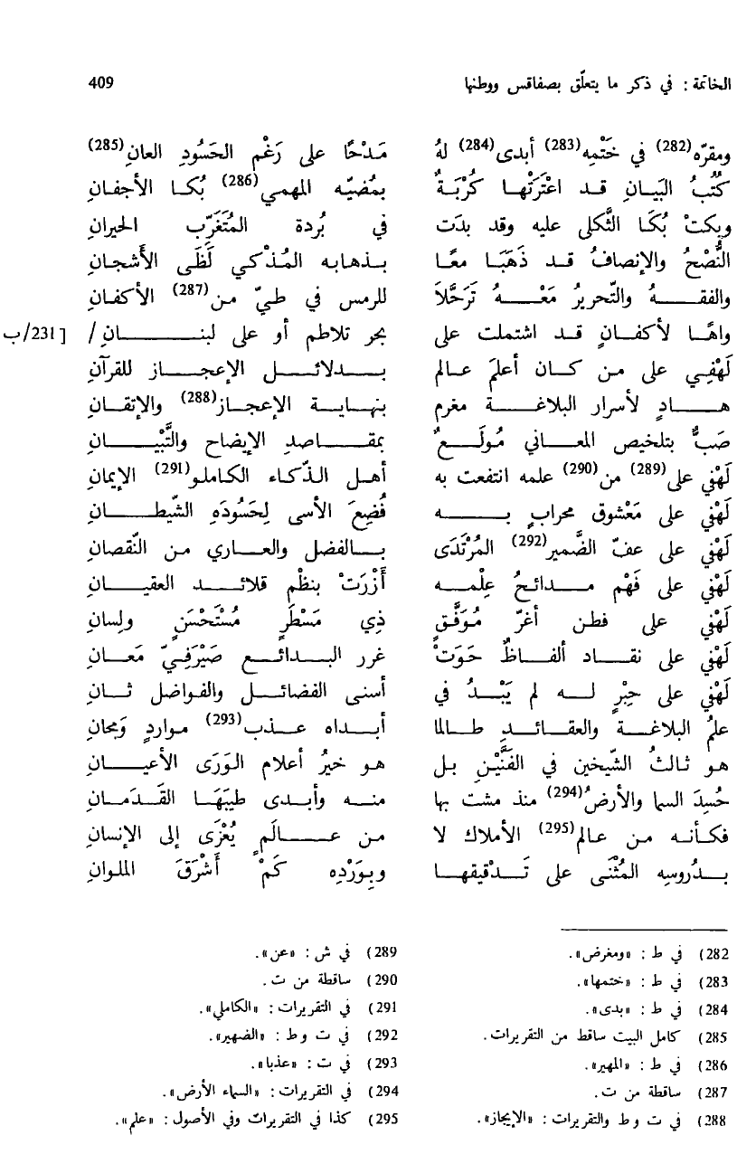 (¬285) كامل البيت ساقط من التقريرات.