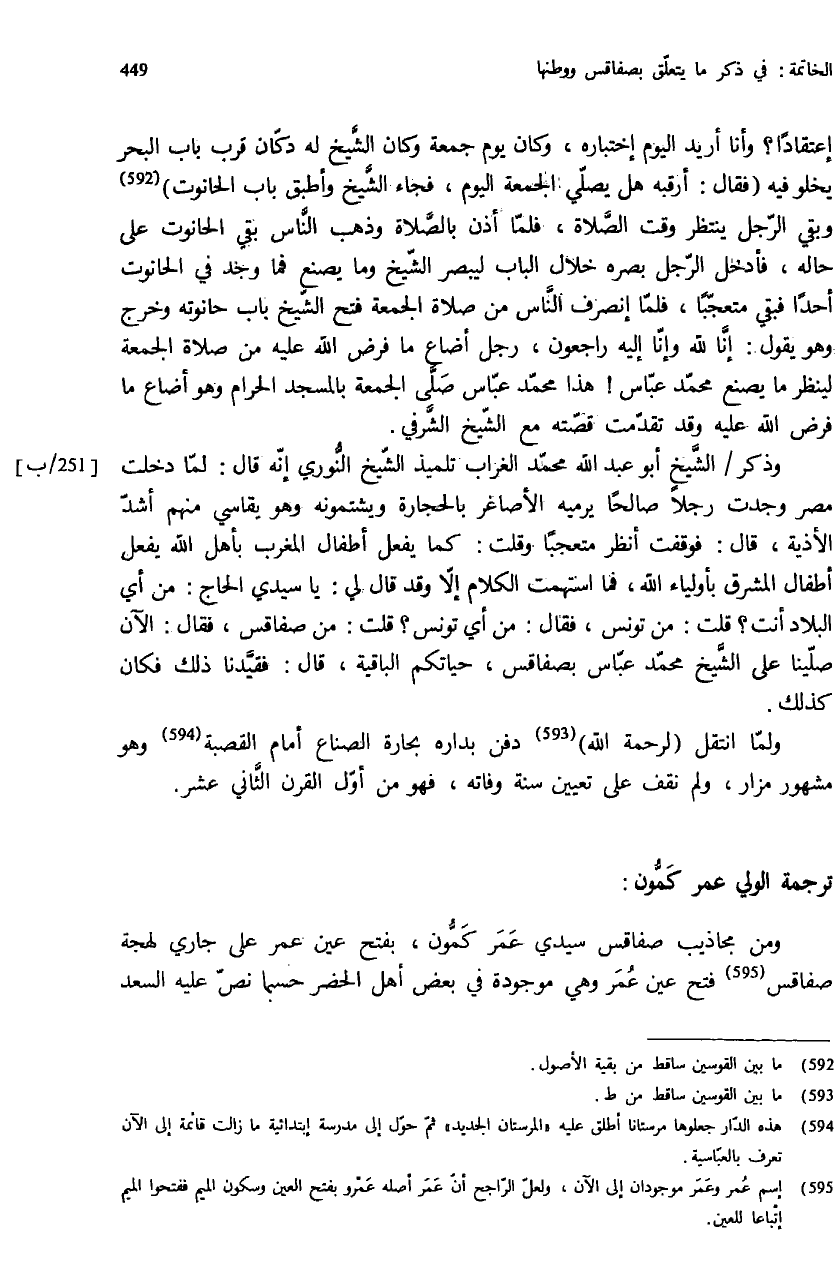 ومن مجاذيب صفاقس سيدي عمر كمّون، بفتح عين عمر على جاري لهجة صفاقس (¬595) فتح عين عمر وهي موجودة في بعض أهل الحضر حسبما نصّ عليه السعد