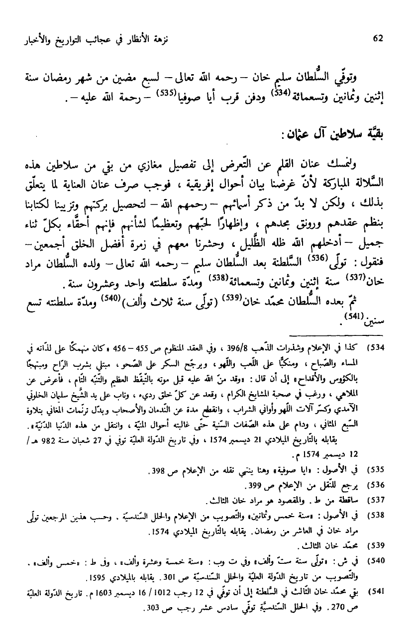 (¬538) في الأصول: «سنة خمس وثمانين» والتّصويب من الإعلام والحلل السّندسيّة، وحسب هذين المرجعين تولّى مراد خان في العاشر من رمضان. يقابله بالتّاريخ الميلادي 1574.