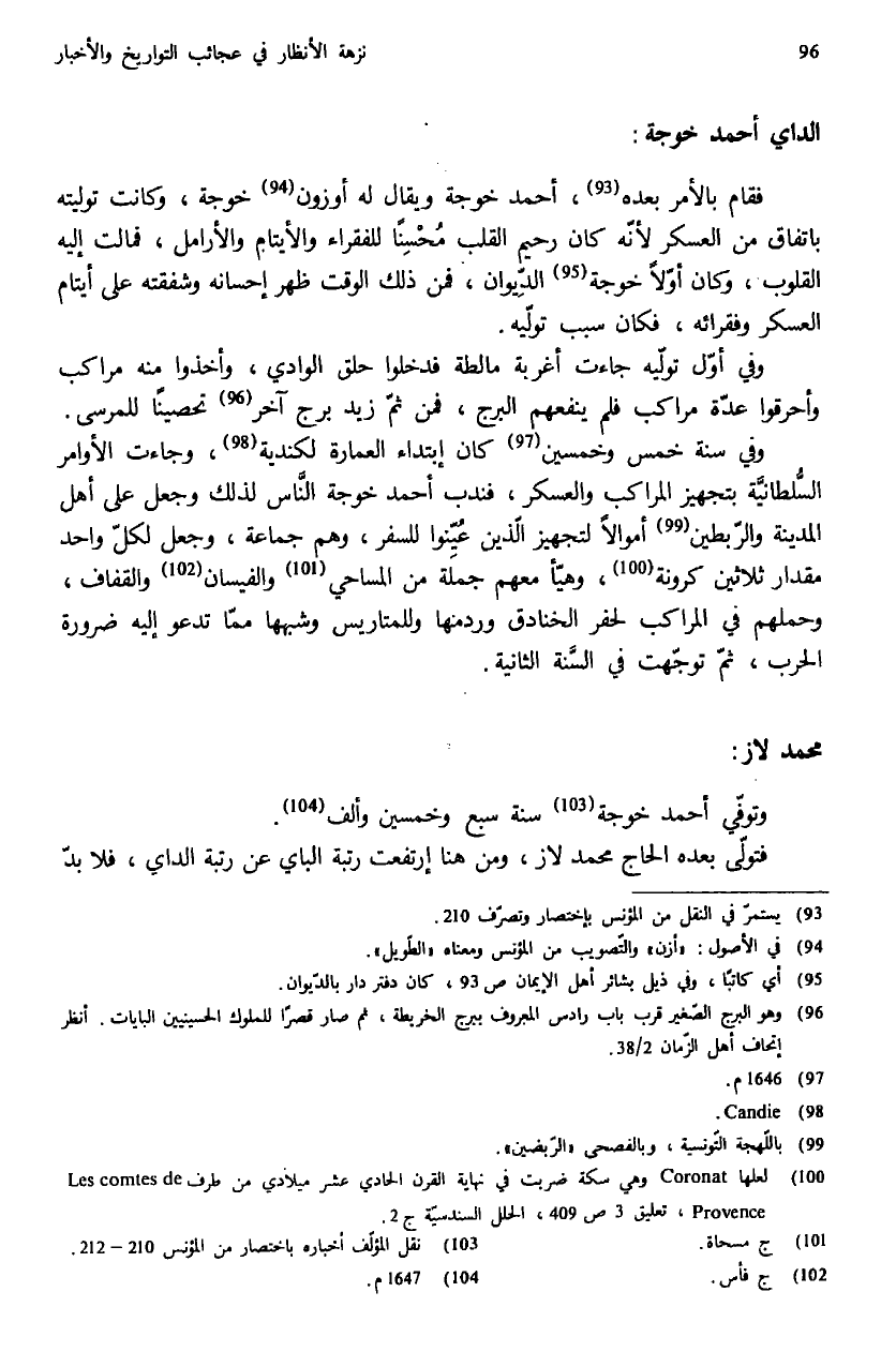 (¬93) يستمرّ في النقل من المؤنس بإختصار وتصرّف 210.