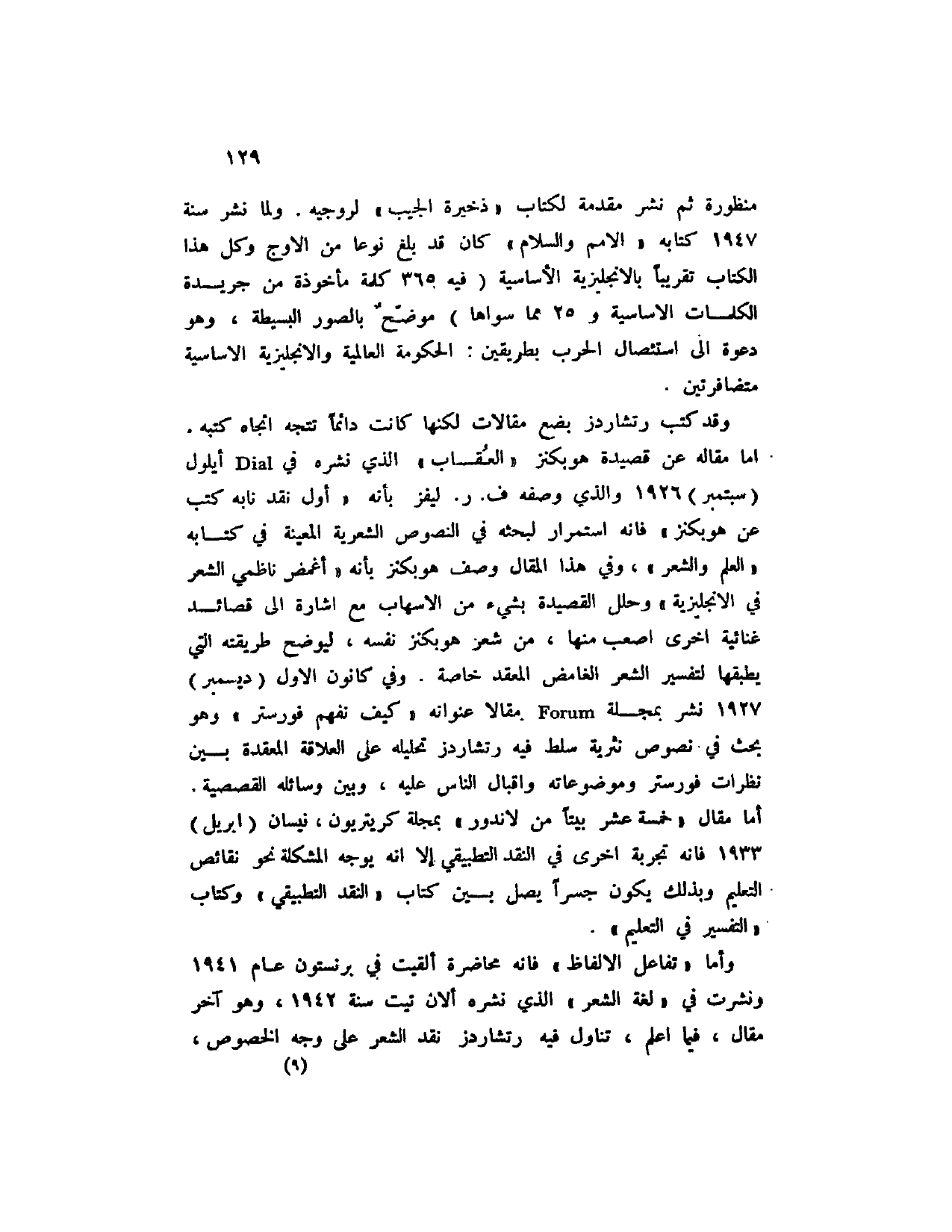 وأما " تفاعل الألفاظ " فأنه محاضرة ألقيت في برنستون عام 1941 ونشرت في " لغة الشعر " الذي نشره ألان تيت سنة 1942، وهو آخر مقال، فيما اعلم، تناول فيه رتشاردز نقد الشعر على وجه الخصوص