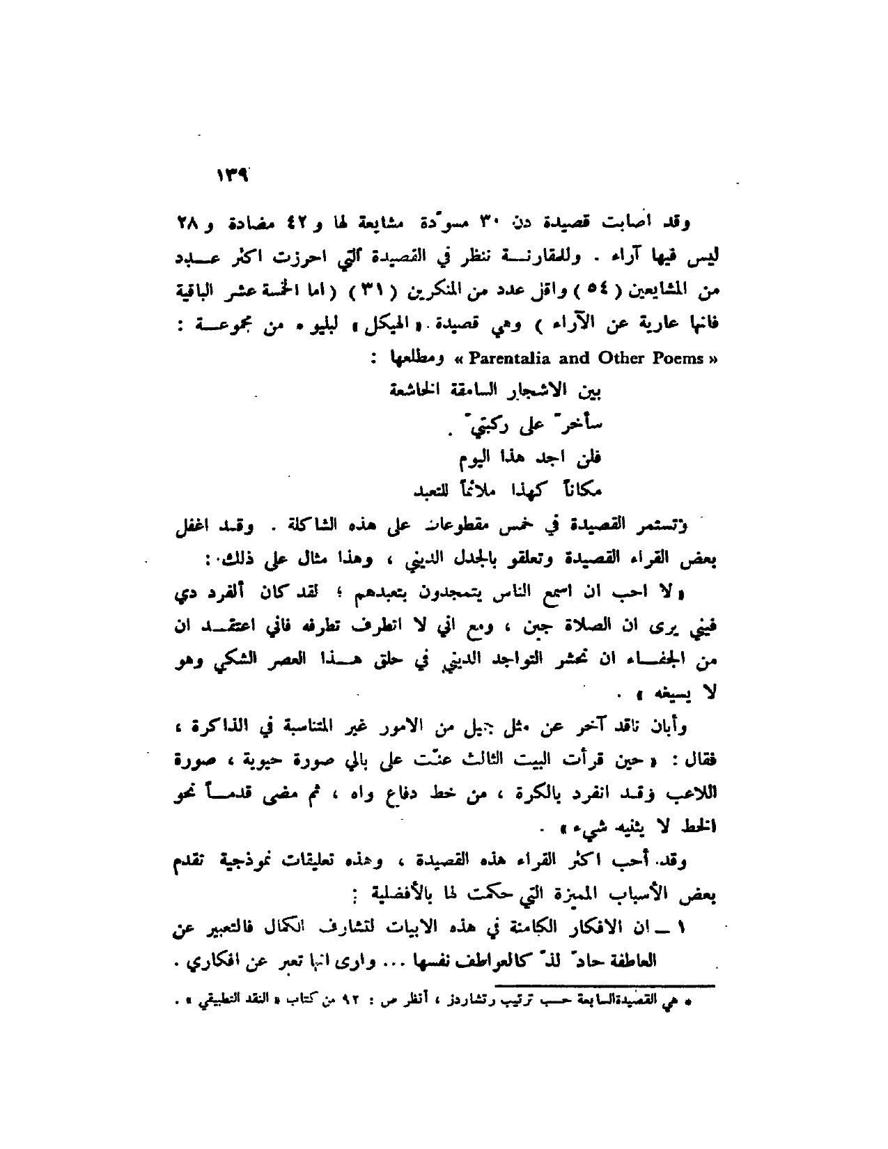 (1) هي القصيدة السابعة حسب ترتيب رتشاردز، أنظر ص 92 من كتاب " النقد التطبيقي ".