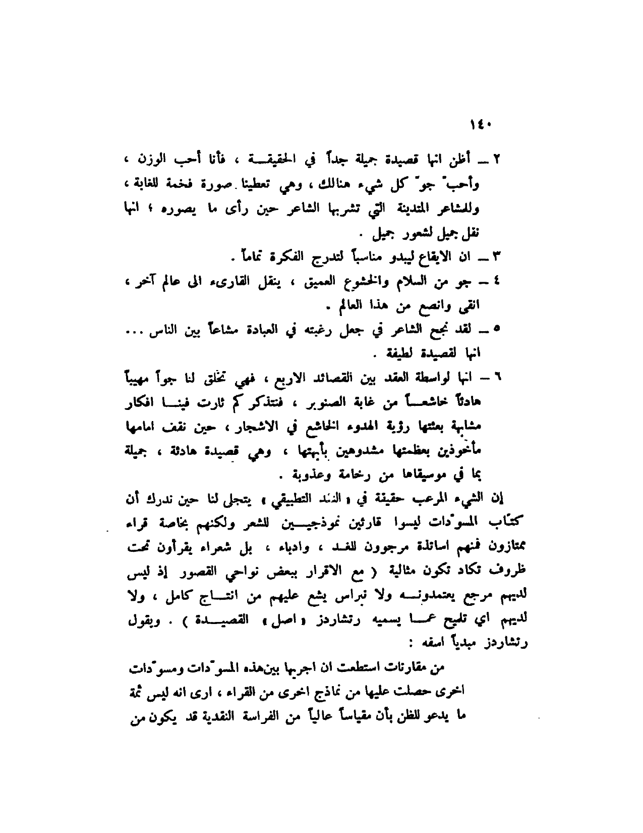 من مقارنات استطعت أن أجريها بين هذه المسودات ومسودات أخرى حصلت عليها من نماذج أخرى من القراء، أرى انه ليس ثمة ما يدعو للظن بان مقياساً عالياً من الفراسة النقدية قد يكون من