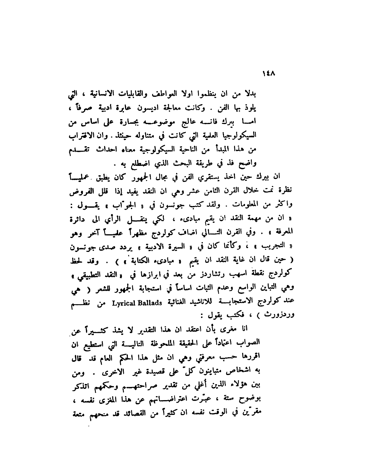 أنا مغرى بأن اعتقد أن هذا التقرير لا يشذ كثيراً عن الصواب اعتماداً على الحقيقة الملحوظة التالية التي أستطيع أن أقررها حسب معرفتي وهي أن مثل هذا الحكم العام قد قال به أشخاص متباينون كل على قصيدة غير الأخرى. ومن بين هؤلاء الذين اغلي من تقدير صراحتهم وحكمهم أتذكر بوضوح ستة، عبرت اعتراضاتهم عن هذا المغزى نفسه، مقرين في الوقت نفسه أن كثيراً من القصائد قد منحهم متعة