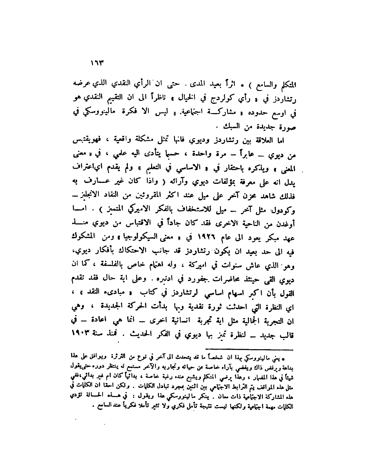 المتكلم والسامع) (1) أثراً بعيد المدى. حتى إن الرأي النقدي الذي عرضه رتشاردز في " رأي كولردج في الخيال " ناظراً إلى أن التقييم النقدي هو في أوسع حدوده " مشاركة اجتماعية " ليس إلا فكرة مالينووسكي في صورة جديدة من السبك.