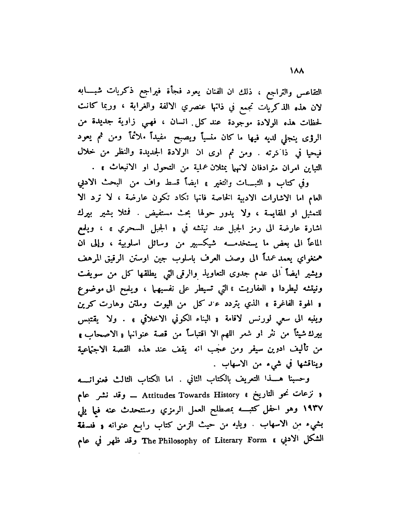 وحسبنا هذا التعريف بالكتاب الثاني. أما الكتاب الثالث فعنوانه " نزعات نحو التاريخ " Attitudes Towards History - وقد نشر عام 1937 وهو احفل كتبه بمصطلح العمل الرمزي وسنتحدث عنه فيما يلي بشيء من الإسهاب. ويليه من حيث الزمن كتاب رابع عنوانه " فلسفة الشكل الأدبي " The Philosophy of Literary Form وقد ظهر في عام