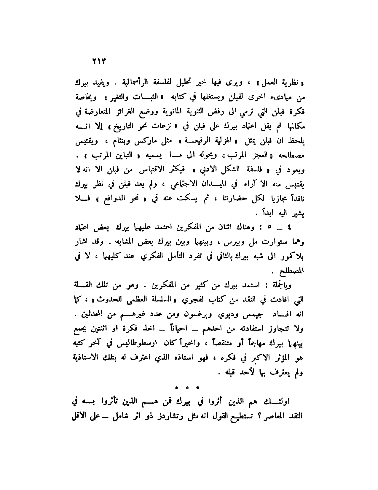 4 - 5 -: وهناك اثنان من المفكرين اعتمد عليهما بيرك بعض اعتماد وهما ستورات مل وبيرس، وبينهما وبين بيرك بعض المشابه، وقد أشار بلاكمور إلى شبه بيرك بالثاني في تفرد التأمل الفكري عند كليهما، لا في المصطلح.