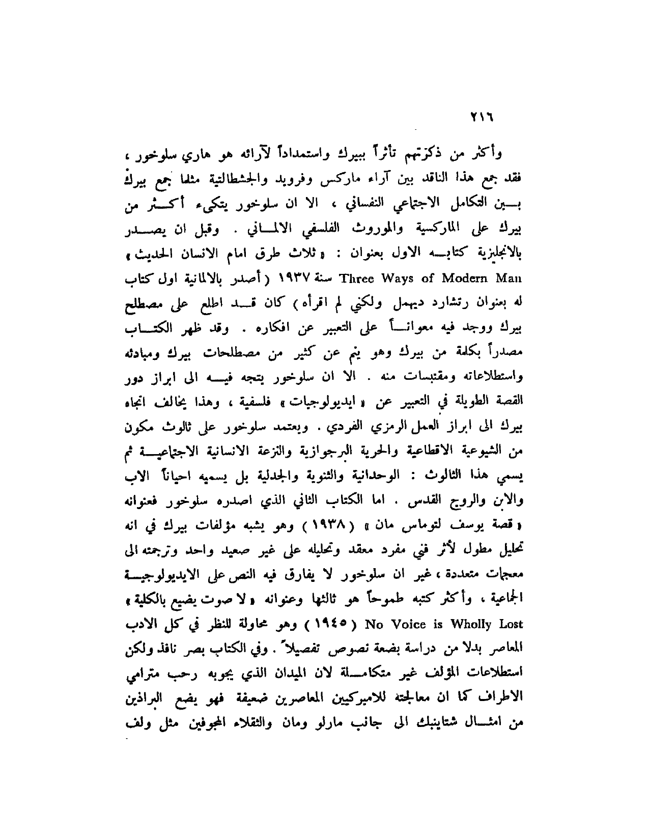 وأكثر من ذكرتهم تأثراً ببيرك واستمداداً لآرائه هو هاري سلوخور، فقد جمع هذا الناقد بين آراء ماركس وفرويد والجشطالتية مثلما جمع بيرك بين التكامل الاجتماعي النفساني، غلا أن سلوخور يتكئ أكثر من بيرك على الماركسية والموروث الفلسفي الألماني. وقبل ان يدر بالإنجليزية كتابه الأول بعنوان: " ثلاث طرق أمام الإنسان الحديث " Three Ways of Modern Man سنة 1937 (اصدر بالألمانية أول كتاب له بعنوان رتشاردز ديهمل ولكني لم أقرأه) كان قد اطلع على مصطلح بيرك ووجد فيه معواناً على التعبير عن أفكاره. وقد ظهر الكتاب مصدراً بكلمة من بيرك وهو ينم عن كثير من مصطلحات بيرك ومبادئه واستطلاعاته ومقتبسات منه. إلا أن سلوخور يتجه فيه إلى إبراز دور القصة الطويلة في التعبير عن " أيديولوجيات " فلسفية، وهذا يخالف اتجاه بيرك إلى إبراز العمل الرمزي الفردي. ويعتمد سلوخور على ثالوث مكون من الشيوعية الإقطاعية والحرية البرجوازية والنزعة الإنسانية الاجتماعية ثم يسمي هذا ثالوث: الوحدانية والثنوية والجدلية بل يسميه أحياناً الأب والابن والروح والقدس. أما الكتاب الثاني الذي أصدره سلوخور فعنوانه " قصة يوسف لتوماس مان " (1938) وهو يشبه مؤلفات بيرك في انه تحليل مطول لأثر فني مفرد معقد وتحليله على غير صعيد واحد وترجمته إلى معجمات متعددة، غير ان سلوخور لا يفارق فيه النص على الأيديولوجية الجماعية، وأكثر كتبه طموحاً هو ثالثها وعنوانه " لا صوت يضيع بالكلية " No Voice is Wholly Lost (1945) وهو محاولة للنظر في كل الأدب المعاصر بدلا من دراسة بضعة نصوص تفصيلاً. وفي الكتاب بصر نافذ ولكن استطلاعات المؤلف غير متكاملة لان الميدان الذي يجوبه رحب مترامي الأطراف كما أن معالجته للأميركيين المعاصرين ضعيفة فهو يضع البراذين من أمثال شتاينبك إلى جانب مارلو ومان والثقلاء المجوفين مثل ولف