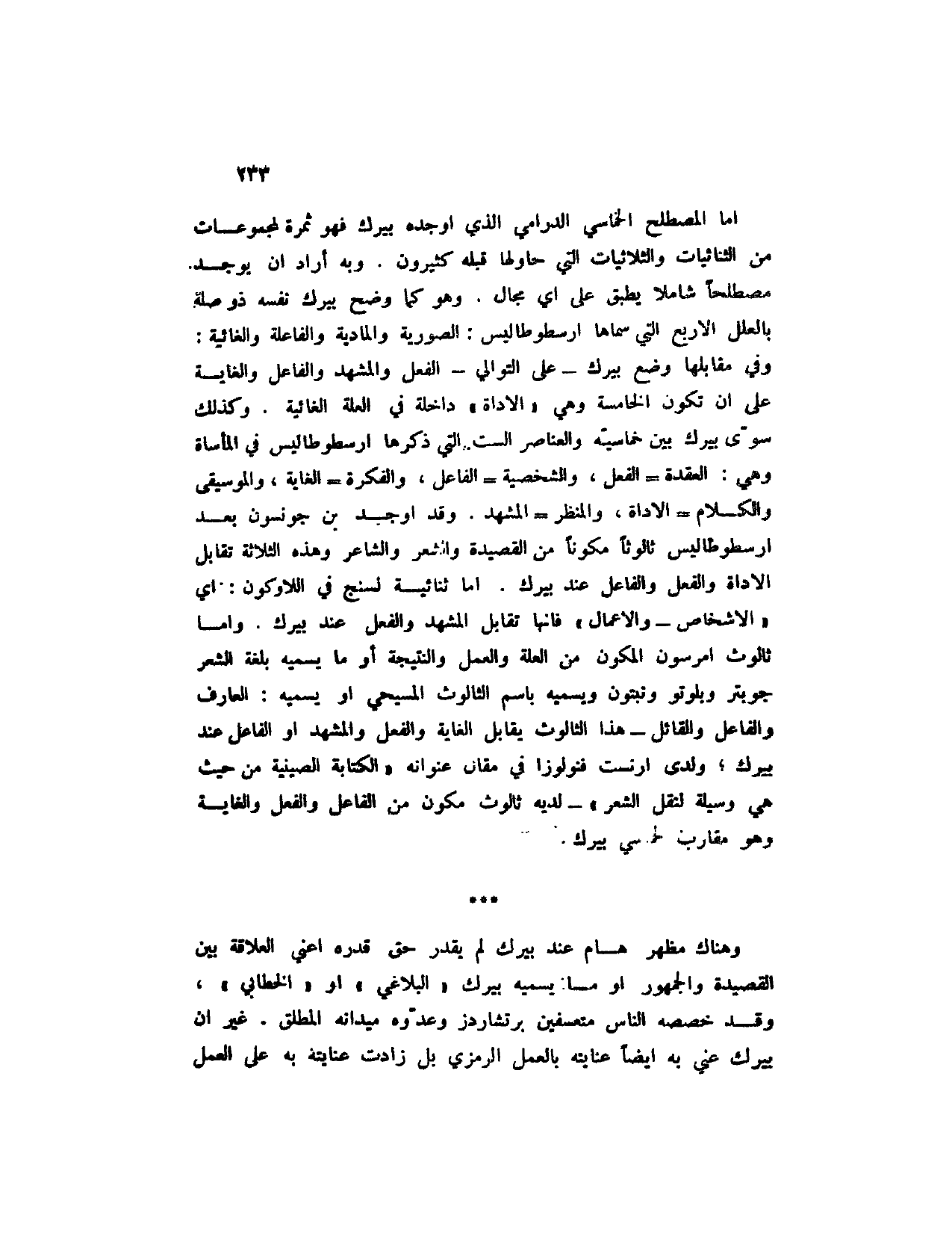 وهناك مظهر هام عند بيرك لم يقدر حق قدره أعني العلاقة بين القصيدة والجمهور أو ما يسميه بيرك " البلاغي " أو " الخطابي "، وقد خصصه الناس متعسفين برتشاردز وعدوه ميدانه المطلق. غير إن بيرك عني به أيضاً عنايته بالعمل الرمزي بل زادت عنايته به على العمل