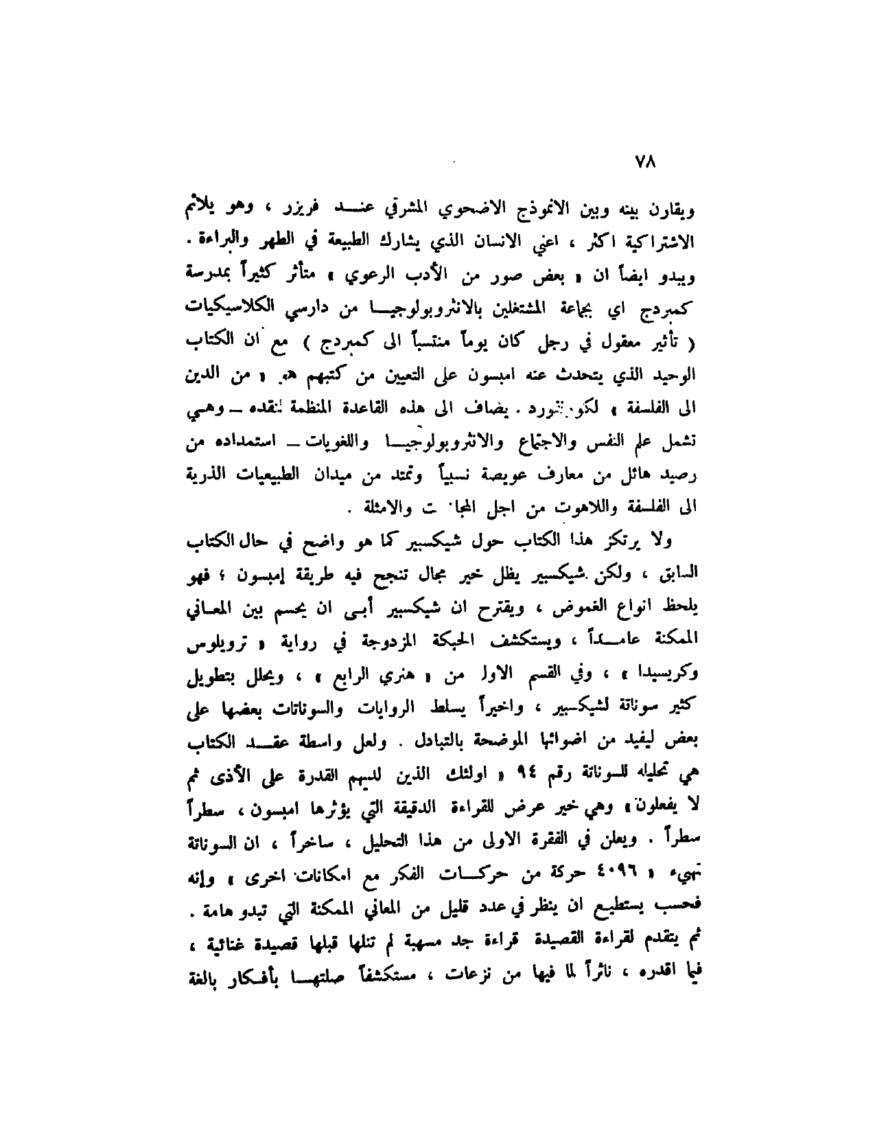 ولا يرتكز هذا الكتاب حول شيكسبير كما هو واضح في حال الكتاب السابق، ولكن شيكسبير يظل خير مجال تنجح فيه طريقة إمبسون؛ فهو يلحظ أنواع الغموض، ويقترح أن شيكسبير أبي أن يحسم بين المعاني الممكنة عامداً، ويستكشف الحبكة المزدوجة في رواية " ترويلوس وكريسيدا "، وفي القسم الأول من " هنري الرابع "، ويحلل بتطويل كثير سوناتة لشيكسبير، وأخيراً يسلط الروايات والسوناتات بعضها على بعض ليفيد من أضوائها الموضحة بالتبادل. ولعل واسطة عقد الكتاب هي تحليله للسوناتة رقم 94 " أولئك الذين لديهم القدرة على الأذى ثم لا يفعلون " وهي خير عرض للقراءة الدقيقة التي يؤثرها إمبسون، سطراً سطراً. ويعلن في الفقرة الأولى من هذا التحليل، ساخراً، أن السوناتة تهيء " 4096 حركة من حركات الفكر مع إمكانات أخرى " وإنه فحسب يستطيع ان ينظر في عدد قليل من المعاني الممكنة التي تبدو هامة. ثم يتقدم لقراءة القصيدة قراءة جد مسهبة لم تنلها قبلها قصيدة غنائية، فيما أقدره، ناثراً لما فيها من نزعات، مستكشفاً صلتها بأفكار بالغة