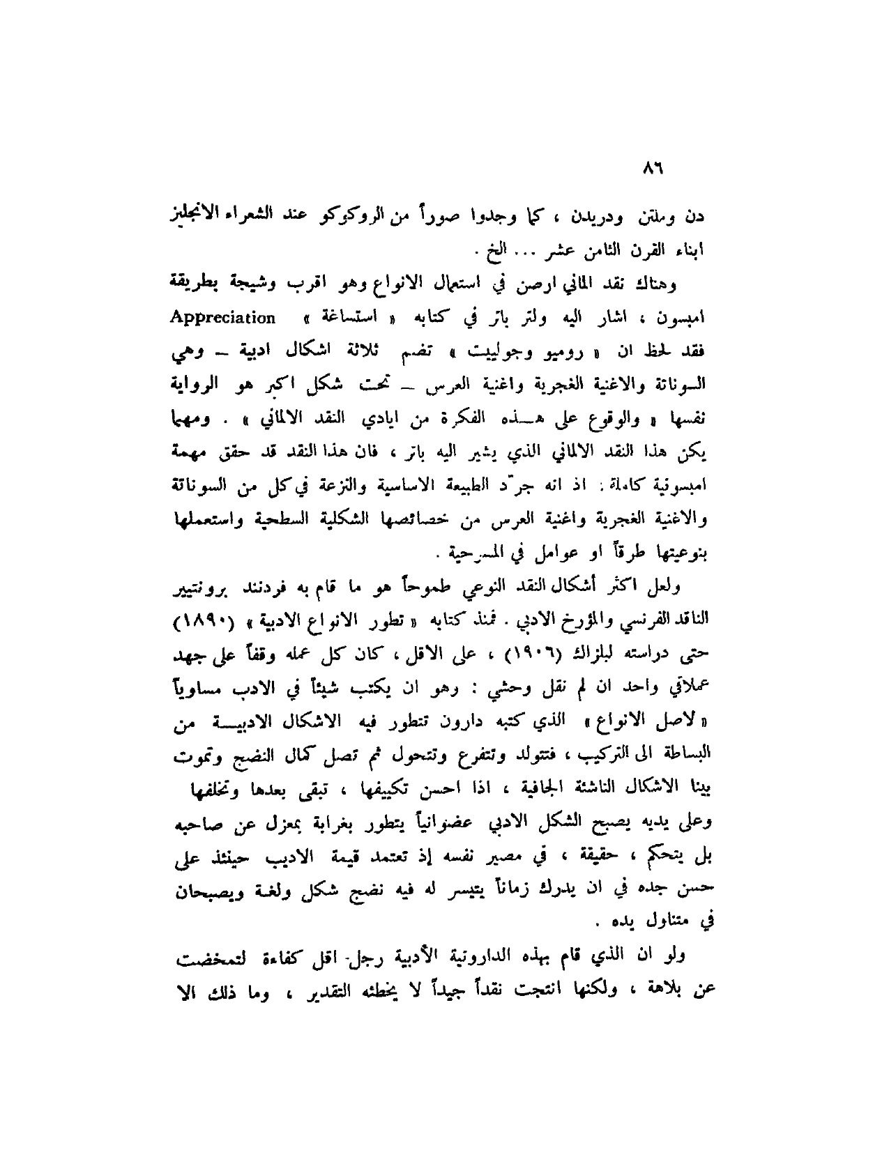 ولو أن الذي قام بهذه الدارونية الأدبية رجل اقل كفاءة لتمخضت عن بلاهة، ولكنها أنتجت نقداً جيداً لا يخطئه التقدير، وما ذلك إلا