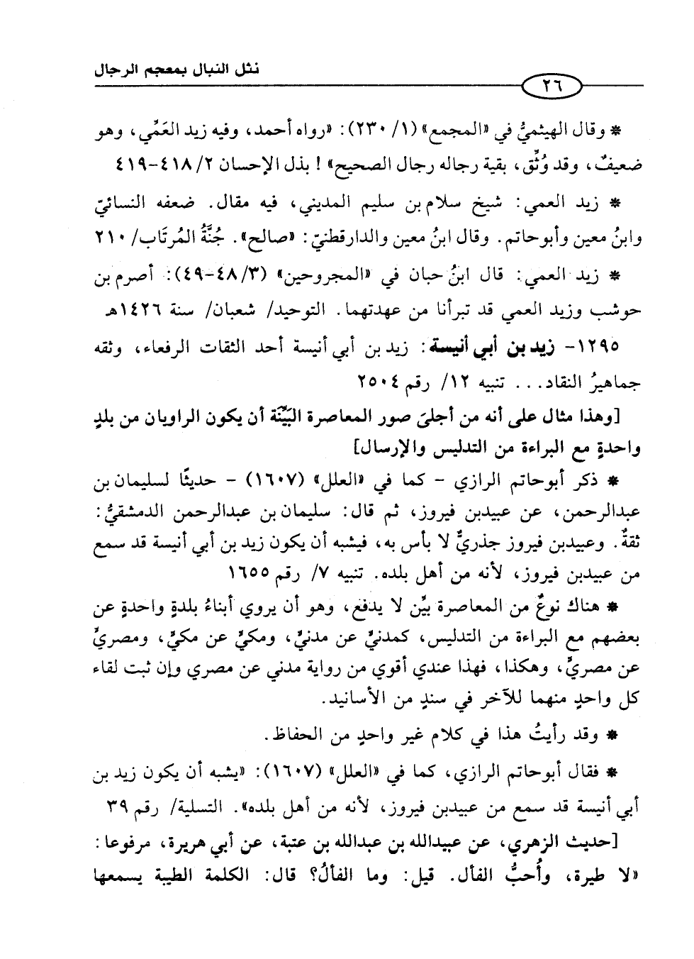 1295 - زيد بن أبي أنيسة: زيد بن أبي أنيسة أحد الثقات الرفعاء، وثقه جماهيرُ النقاد. . . تنبيه 12/ رقم 2504