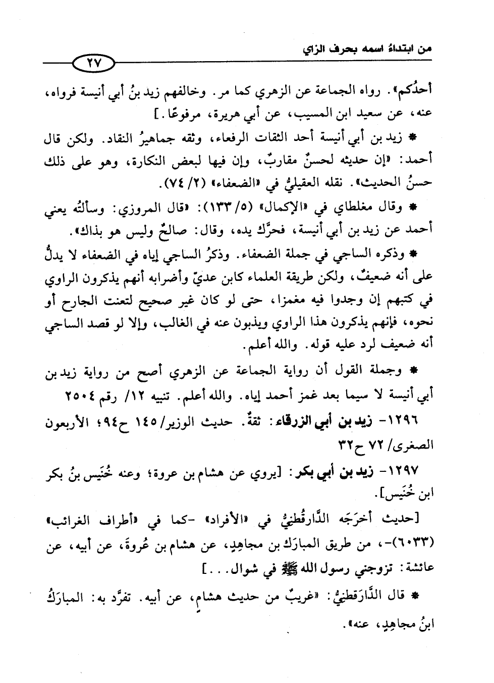 1297 - زيد بن أبي بكر: [يروي عن هشام بن عروة؛ وعنه خُنَيس بنُ بكر ابن خُنَيس].