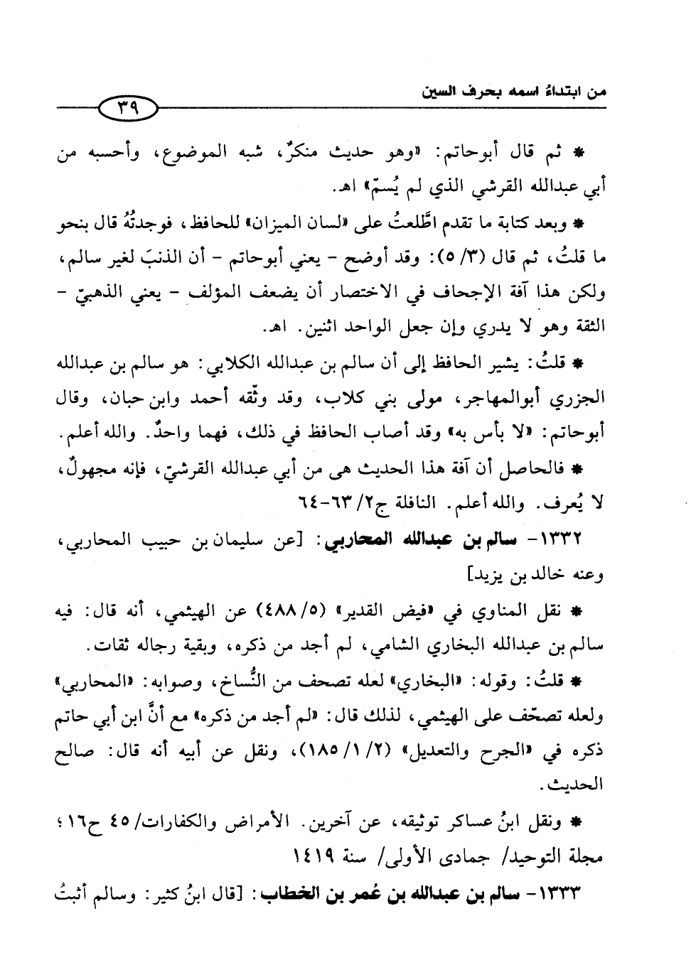 1333 - سالم بن عبد الله بن عُمر بن الخطاب: [قال ابنُ كثير: وسالم أثبتُ