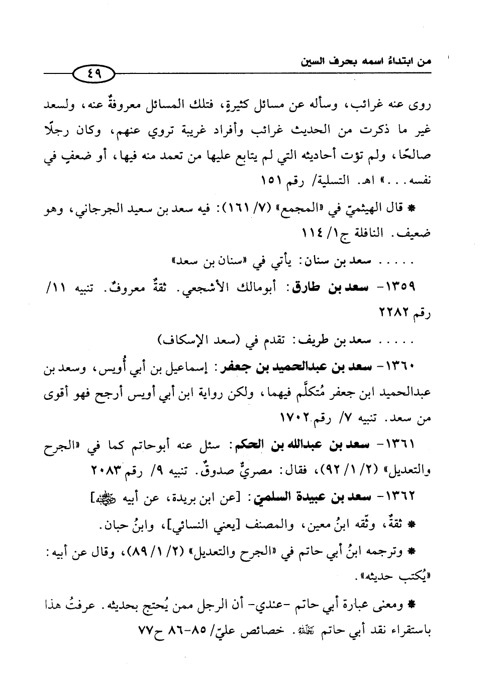 1361 - سعد بن عبد الله بن الحكم: سئل عنه أبو حاتم كما في "الجرح والتعديل" (2/ 1/ 92)، فقال: مصريٌّ صدوقٌ. تنبيه 9/ رقم 2083