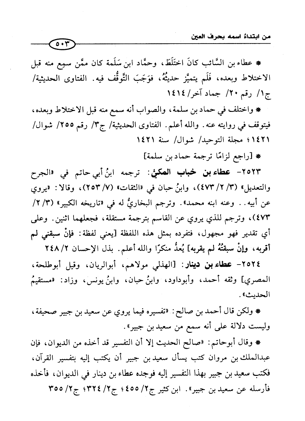 * واختلف في حماد بن سلمة، والصواب أنه سمع منه قبل الاختلاط وبعده، فيتوقف في روايته عنه. والله أعلم. الفتاوى الحديثية/ ج 3/ رقم 255/ شوال/ 1421، مجلة التوحيد/ شوال/ سنة 1421