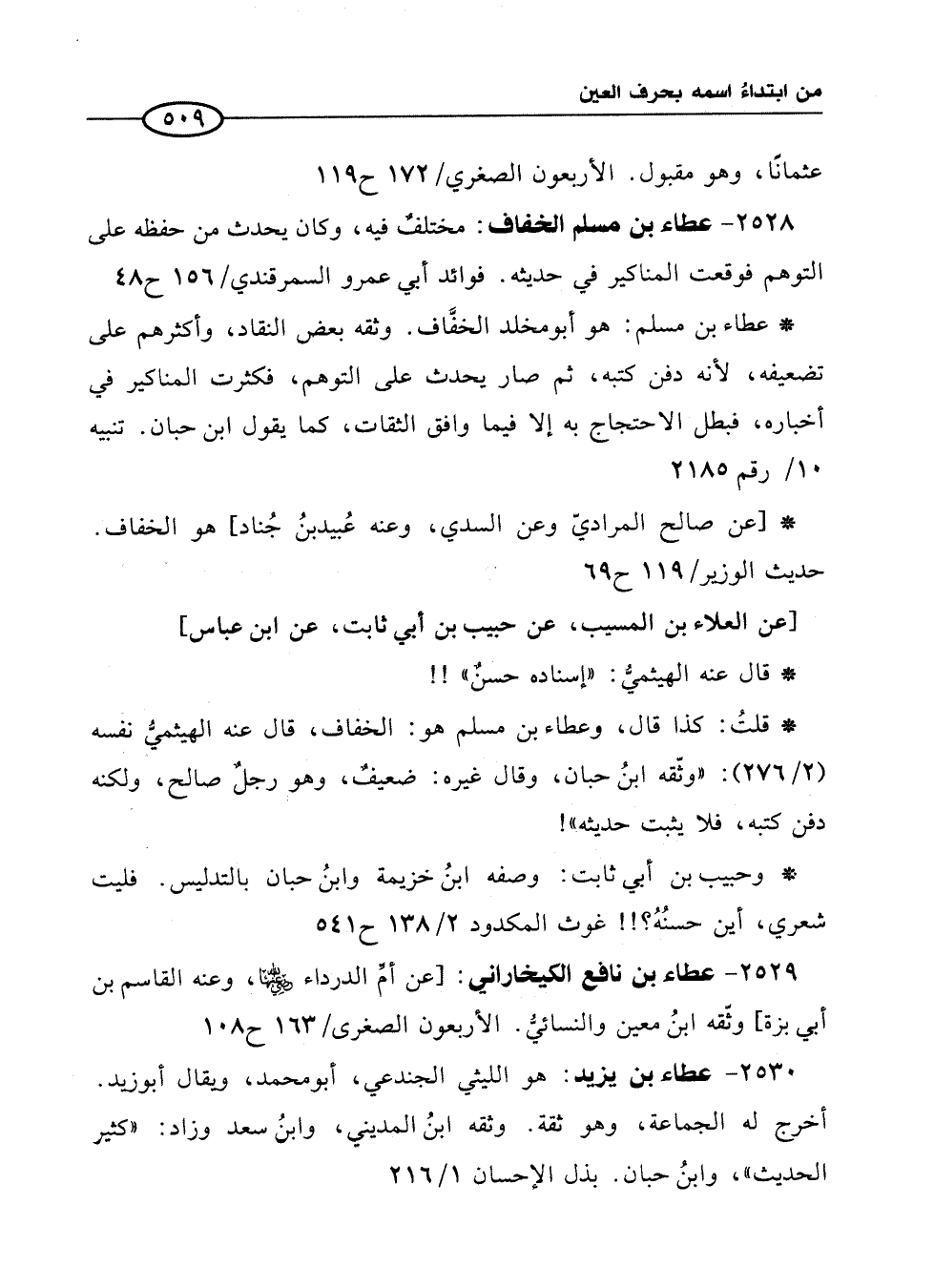 2529 - عطاء بن نافع الكيخاراني: [عن أمِّ الدرداء رضي الله عنها، وعنه القاسم بن أبي بزة] وثّقه ابنُ معين والنسائيُّ. الأّربعون الصغرى/ 163 ح 108
