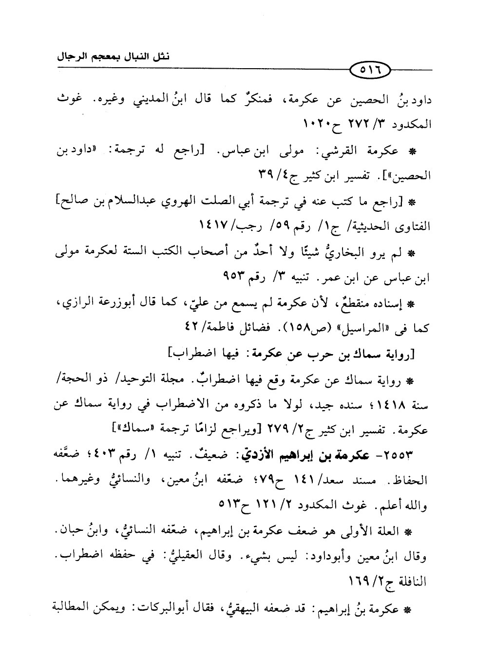 * عكرمة القرشي: مولى ابن عباس. [راجع له ترجمة: "داود بن الحصين"]. تفسير ابن كثير ج 4/ 39