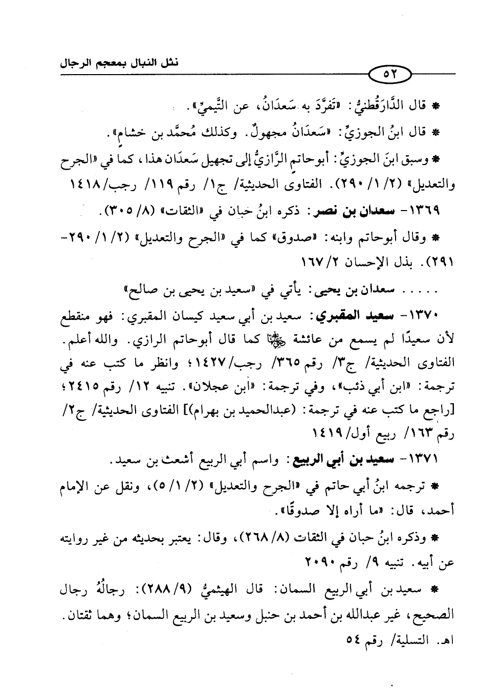 1369 - سعدان بن نصر: ذكره ابنُ حبان في "الثقات" (8/ 305).