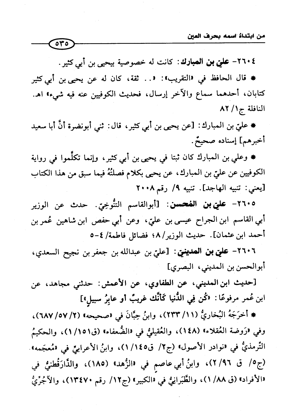 2604 - عليّ بن المبارك: كانت له خصوصية بيحيى بن أبي كثير.
