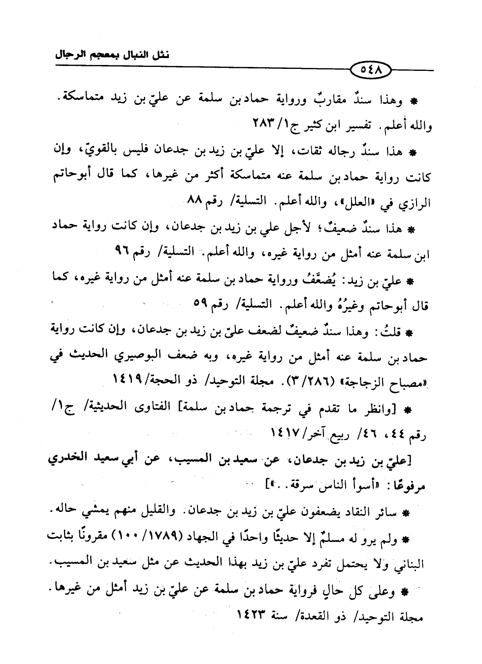 * [وانظر ما تقدم في ترجمة حماد بن سلمة] الفتاوى الحديثية / ج 1/ رقم 44، 46 / ربيع آخر/ 1417