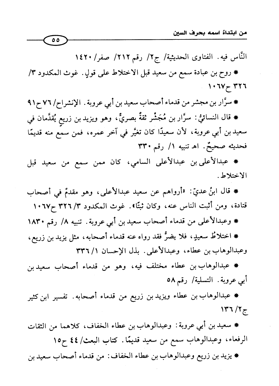 * سرَّار بن مجشر من قدماء أصحاب سعيد بن أبي عروبة. الإنشراح/ 76 ح 91