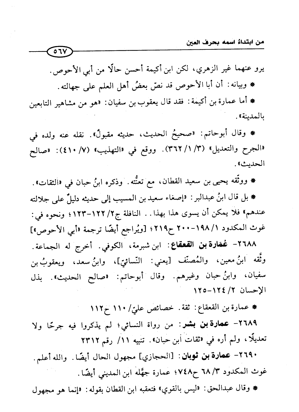 2688 - عُمارة بن القعقاع: ابن شبرمة، الكوفي. أخرج له الجماعة. وثَّقه ابنُ معين، والمُصنّف [يعني: النّسائيّ]، وابنُ سعد، ويعقوبُ بن سفيان، وابنُ حبان وغيرهم. وقال أبو حاتم: "صالح الحديث". بذل الإحسان 2/ 124 - 125