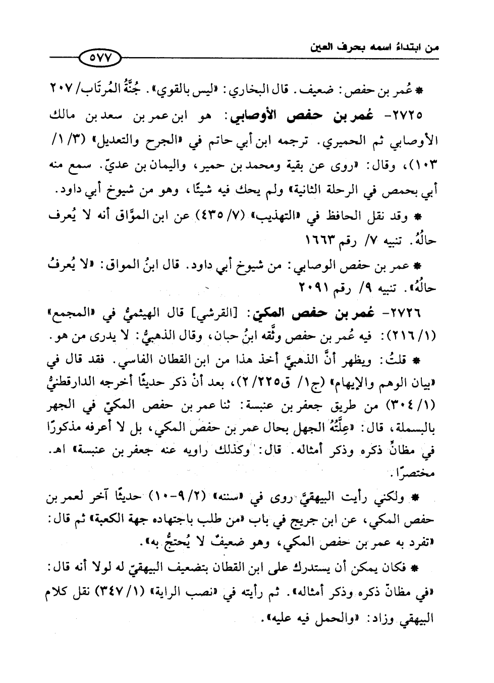*عُمر بن حفص: ضعيف. قال البخاري: "ليس بالقوي".جُنَّةُ المُرتَاب/ 207