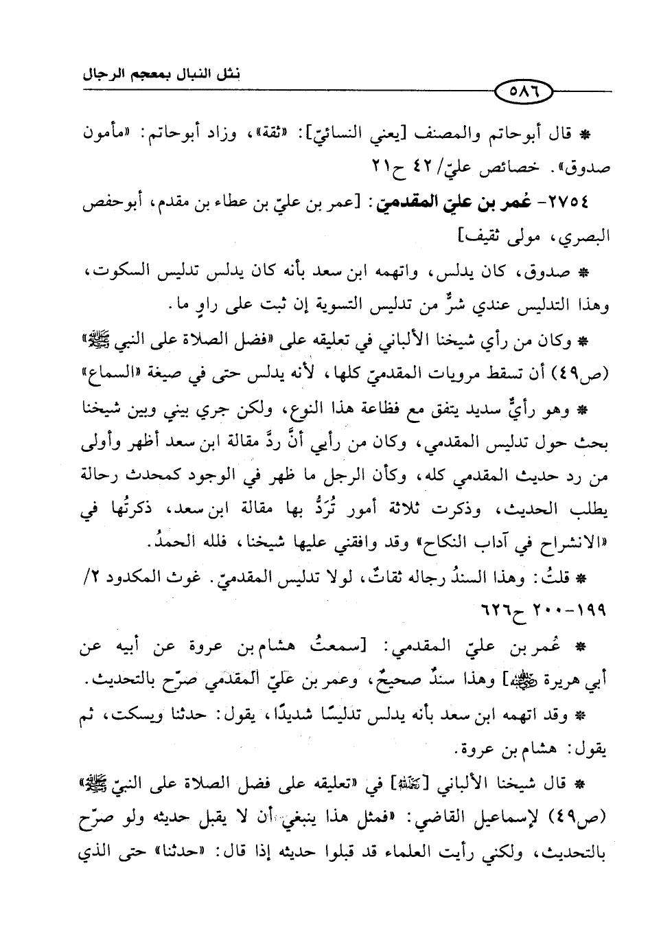* وكان من رأي شيخنا الألباني في تعليقه على "فضل الصلاة على النبي -صلى الله عليه وسلم-" (ص49) أن تسقط مرويات المقدميّ كلها, لأنه يدلس حتى في صيغة "السماع"
