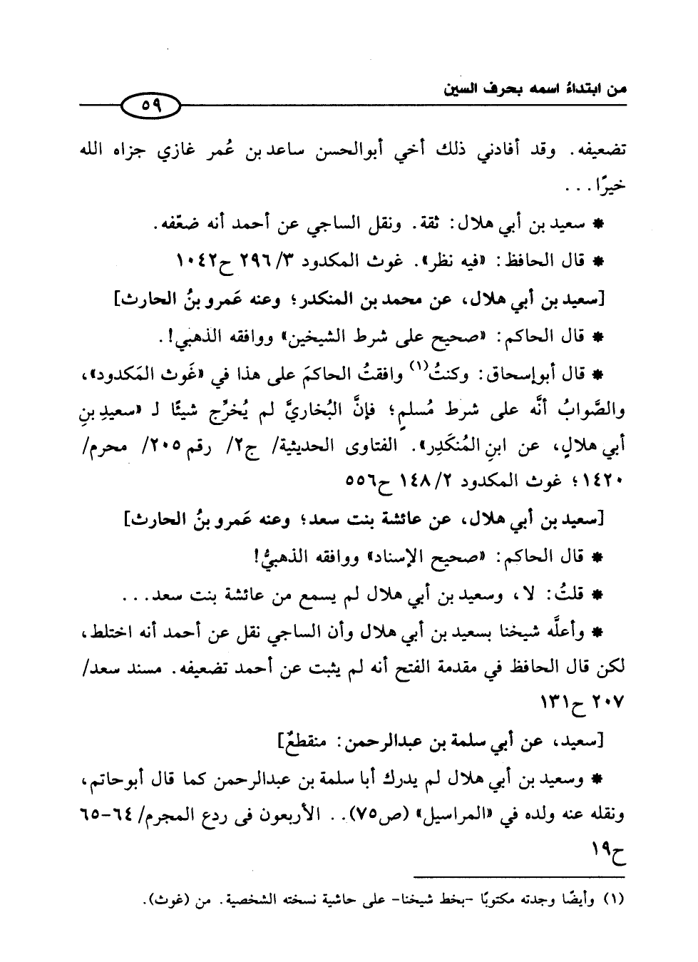 * وسعيد بن أبي هلال لم يدرك أبا سلمة بن عبد الرحمن كما قال أبو حاتم، ونقله عنه ولده في "المراسيل" (ص 75). . الأربعون في ردع المجرم/ 64 - 65 ح19