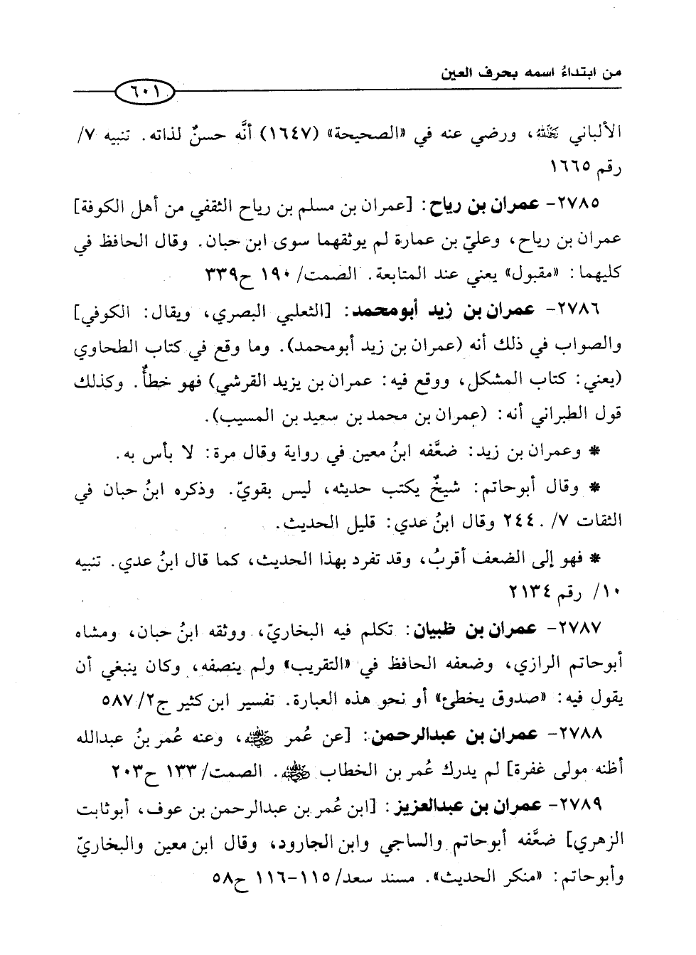 2787 - عمران بن ظبيان: تكلم فيه البخاريّ، ووثقه ابنُ حبان، ومشاه أبو حاتم الرازي، وضعفه الحافظ في "التقريب" ولم ينصفه، وكان ينبغي أن يقول فيه: "صدوق يخطئ" أو نحو هذه العبارة. تفسير ابن كثير ج2/ 587