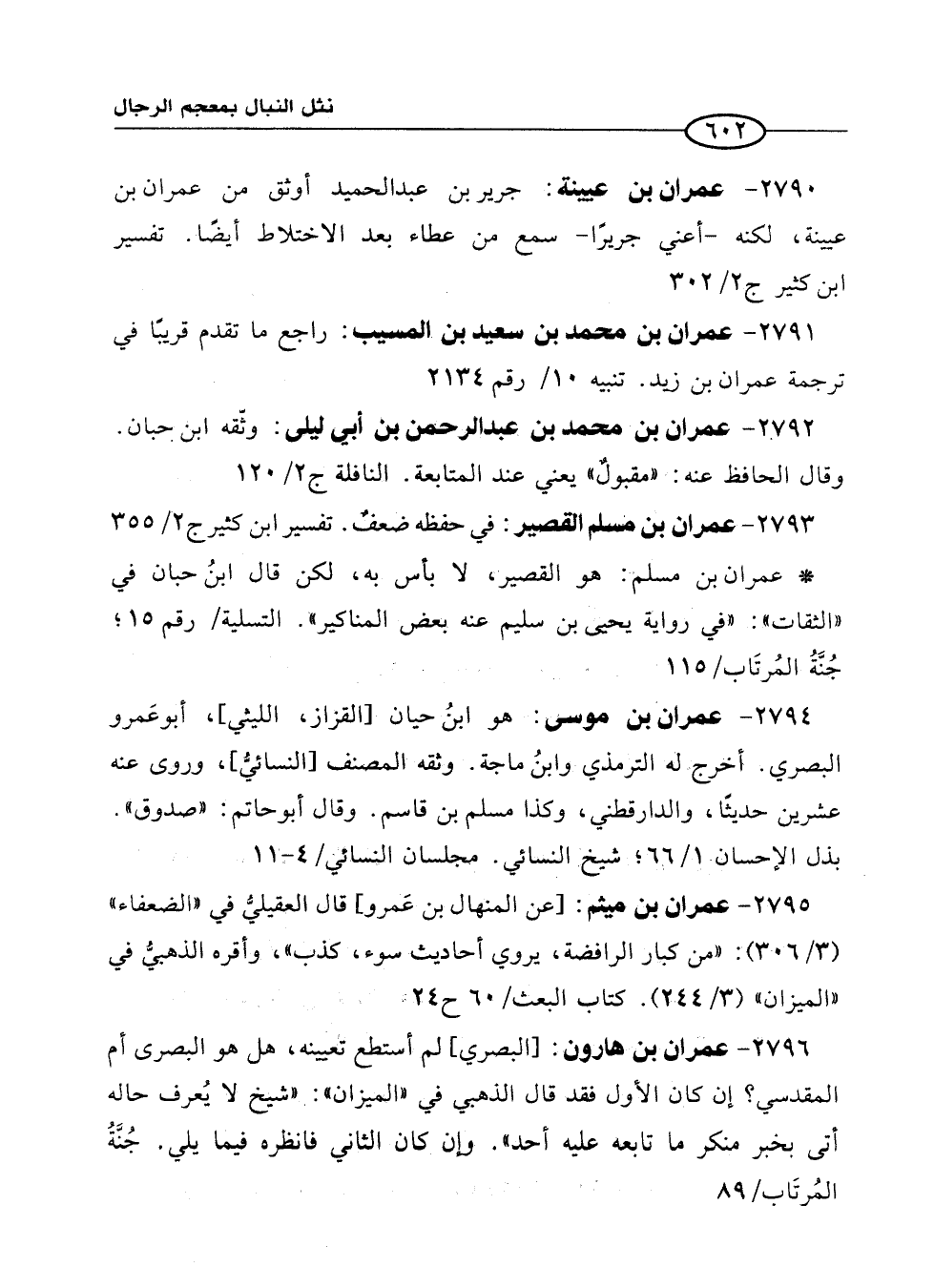 2791 - عمران بن محمد بن سعيد بن المسيب: راجع ما تقدم قريبًا في ترجمة عمران بن زيد. تنبيه 10/ رقم 2134