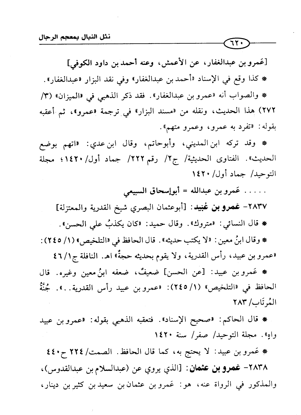 2837 - عَمرو بن عُبَيد: [أبو عثمان البصري شيخ القدرية والمعتزلة]